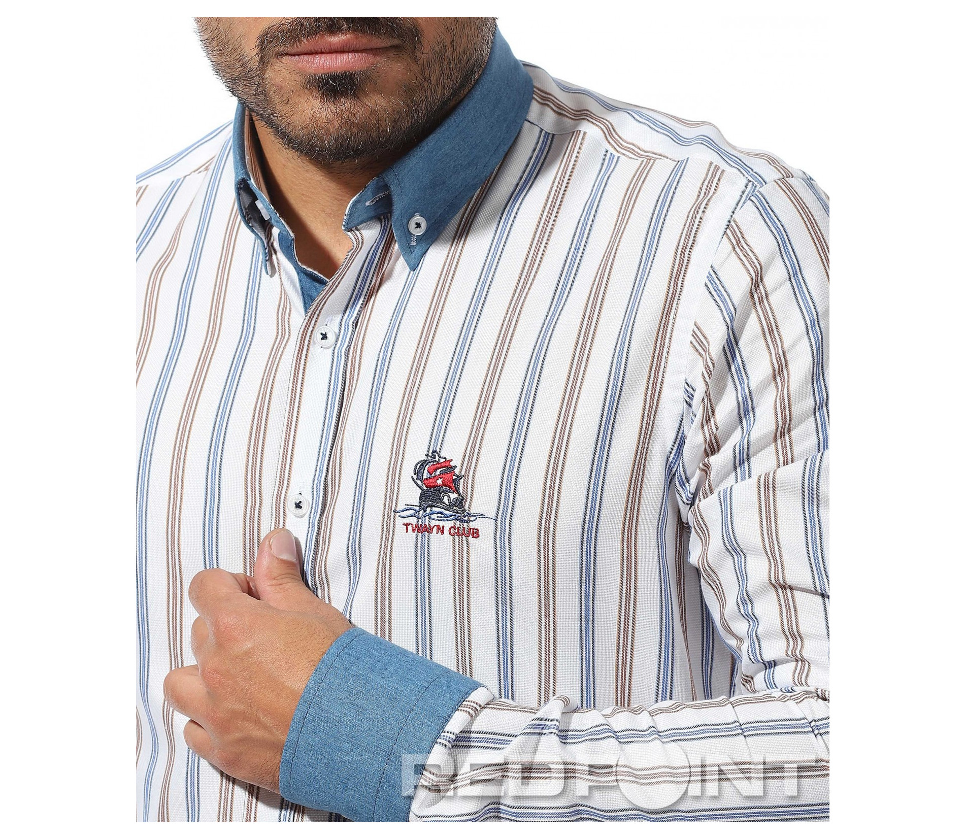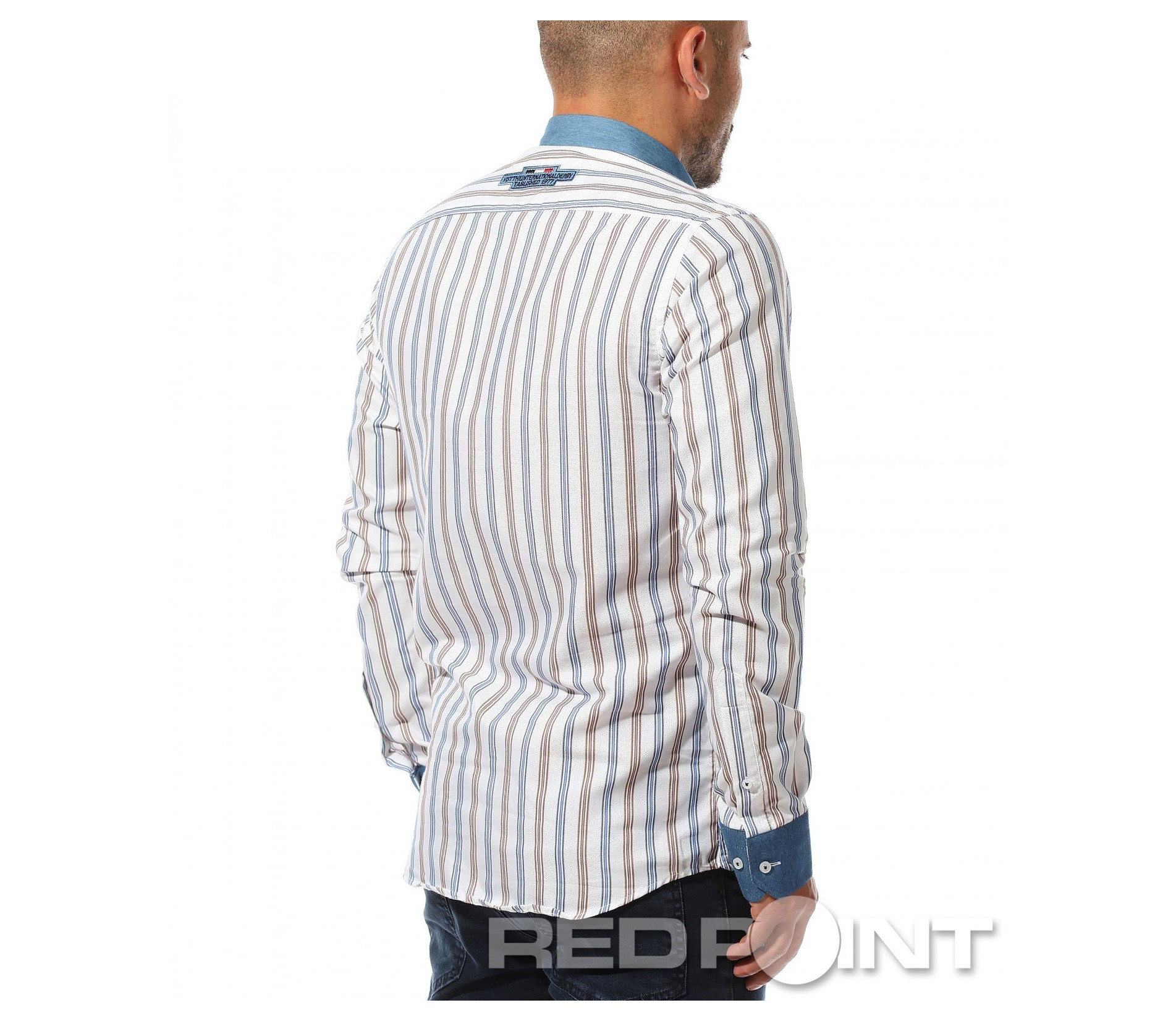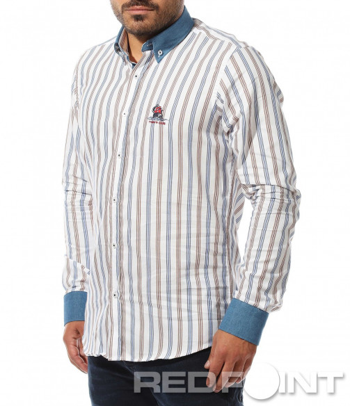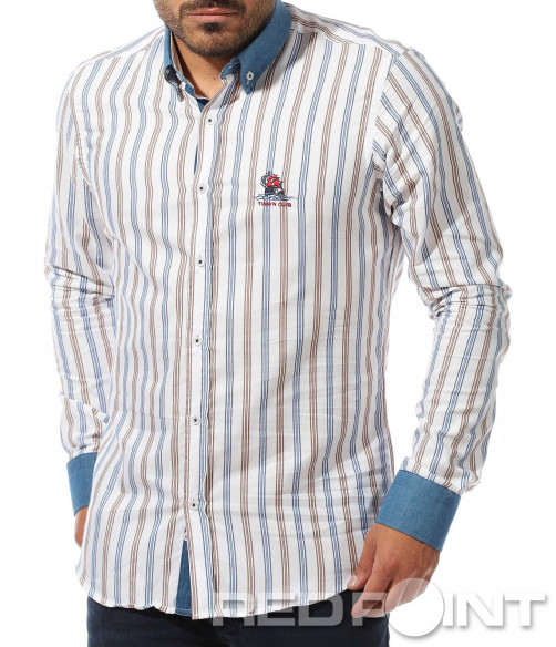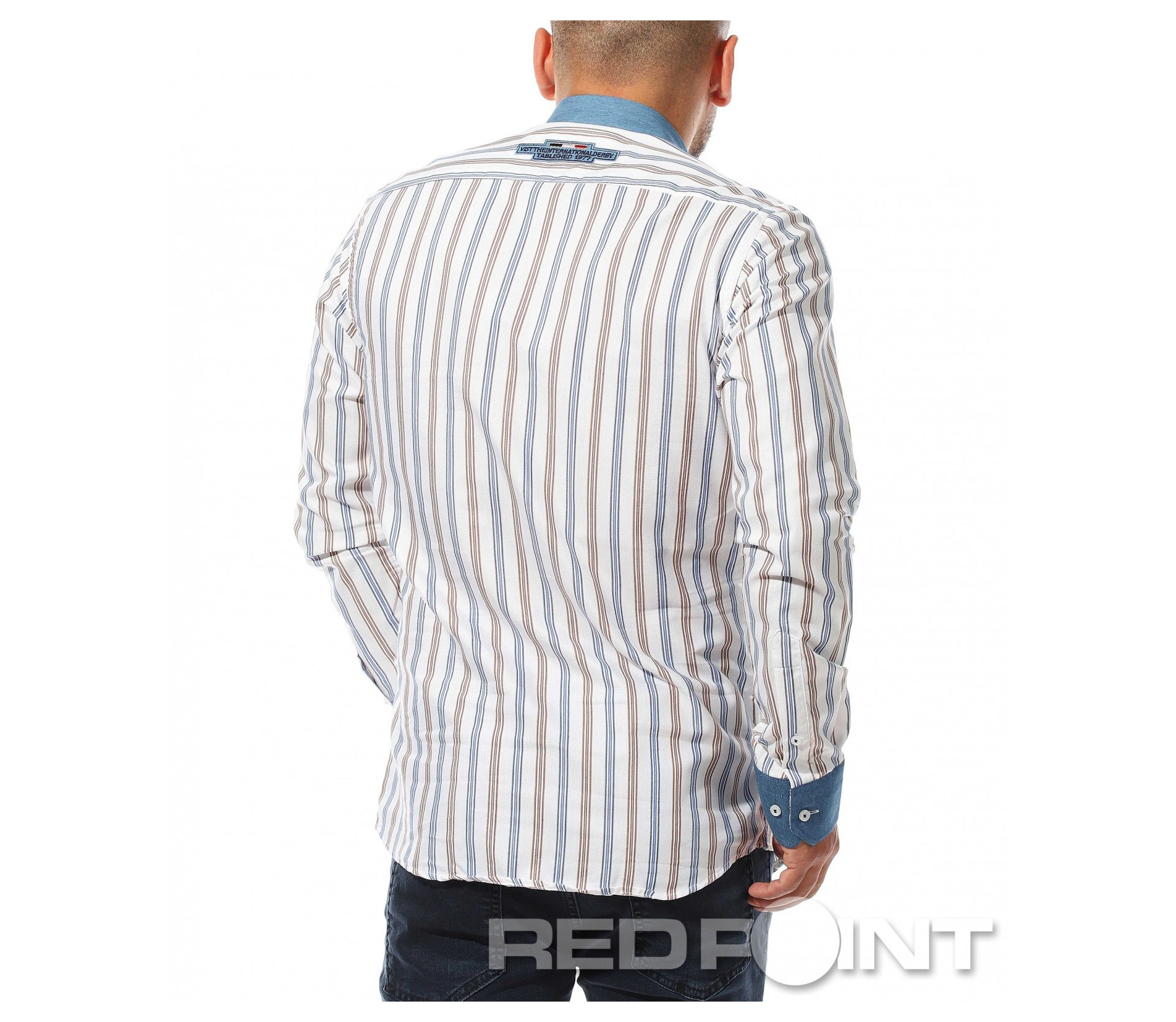 Описание на продукта: Традициония дизайн на мъжката риза е вече мит, а още по-голям мит е че ризата е подходяща само за официален аутфит. Представяме Ви един модел, който преобръща представи с нетипичния и щур десен, в който е облечен. Тази риза е изградена в с помощта на пъстро вертикално райе, поверено на едри ленти, поставени върху светла основа. За контраст са изпослвани ръкавите и яката, които са изработени от син деним плат, който перфектно приляг към цялостната визия на дрехата. За черешка на тортата са подбрани два орнамента под формата на бродерия, единият разположен като лого при гърдите, а другия на гърба впод формата на ръкописен надпис. Всички тези части съединени в едно играждат най-вдъхновяващия модел мъжка риза.