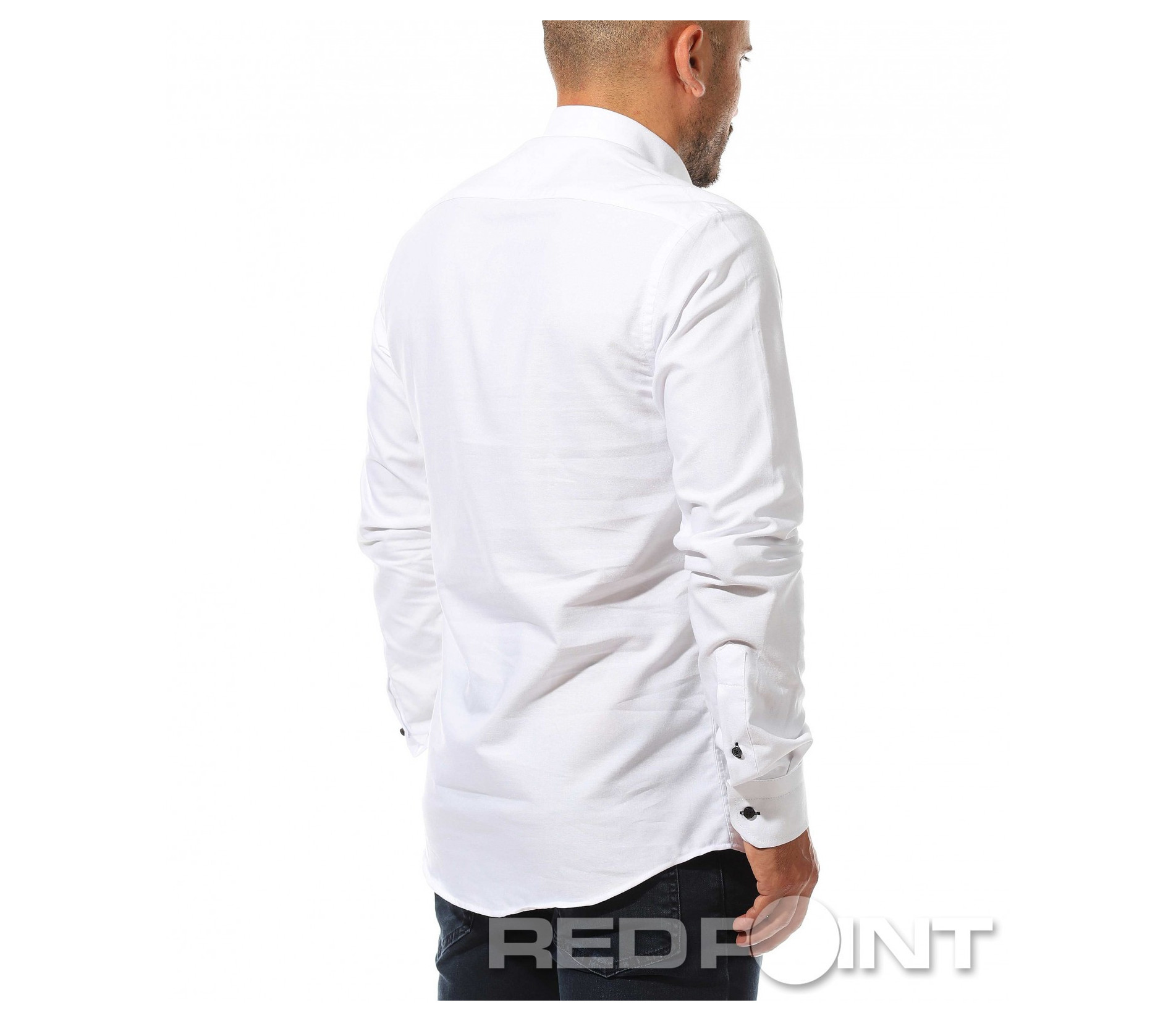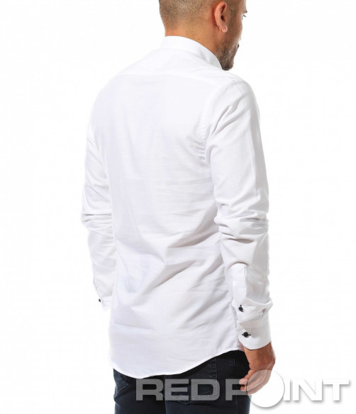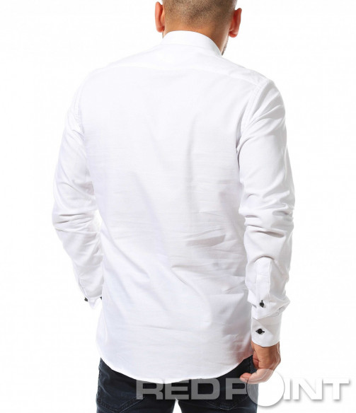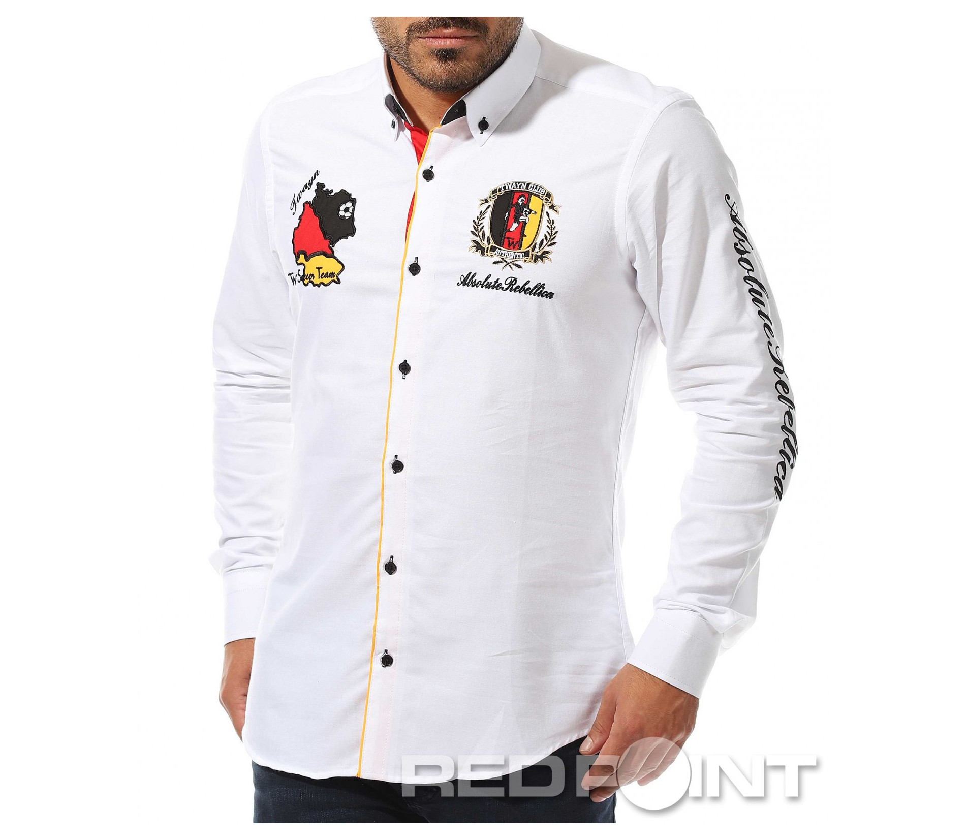Описание на продукта: Представяме Ви един модел мъжка риза, поверена на бялата основа, която успява да създаде напълно нов облик на ежедневния и клубен имидж. Върху иначе класическата основа са поставени няколко много едри и пъстри декоративни елемента, които създеават напълно ново виждане за ризата като официална дреха. При гърдите са поставени две големи продерии, в които се преплитат черно жълти нюанси. В продължението на закопчаването, под формата на кант, също откриваме акцентът. Последния мотив е поставени при ръкава, като е подбран ръкописен черен надпис, също изграден под формата на бродерия. Задължителния елемент от всяка риза е яката, тъй като именно тя определеня и подчертава стила на дрехата. Тук е подбрана в пълен унисон с цялостната визия, а именно в ниска форма тип попска яка.