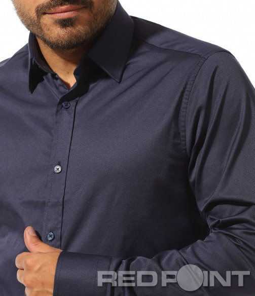 Описание на продукта: За специален случай или заж офисния стайлинг представяме един модел мъжка елегантна риза, която откривате в три автентични цвята: черен, тъмно син и светло син. Дизайнът й е изчистен от излишни орнаменти, които да променят имиджа на ризата. Единственият акцент се намира в областта на шията, където е разположена автентична официална яка. Закопчаването на мъжката риза е класическо и ненатрапчиво, състоящо се от вертикално разположени малки копчета по цялата дължина. От друга страна материята на моделът е изграден върху памучна база, към която е допълнен деликатен блясък, напомнямщ за елегантна сатенена материя. Този вмъкнат детайл слага и крайния щрих.