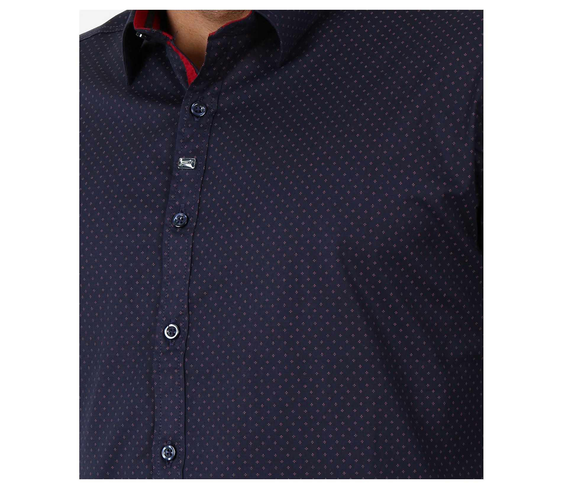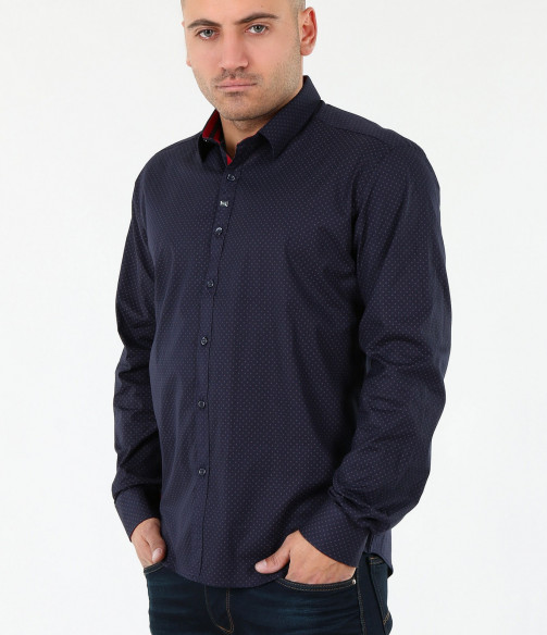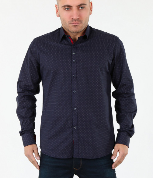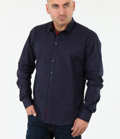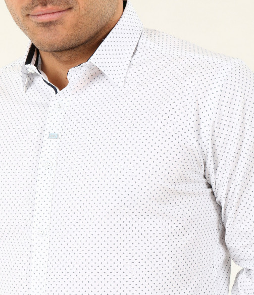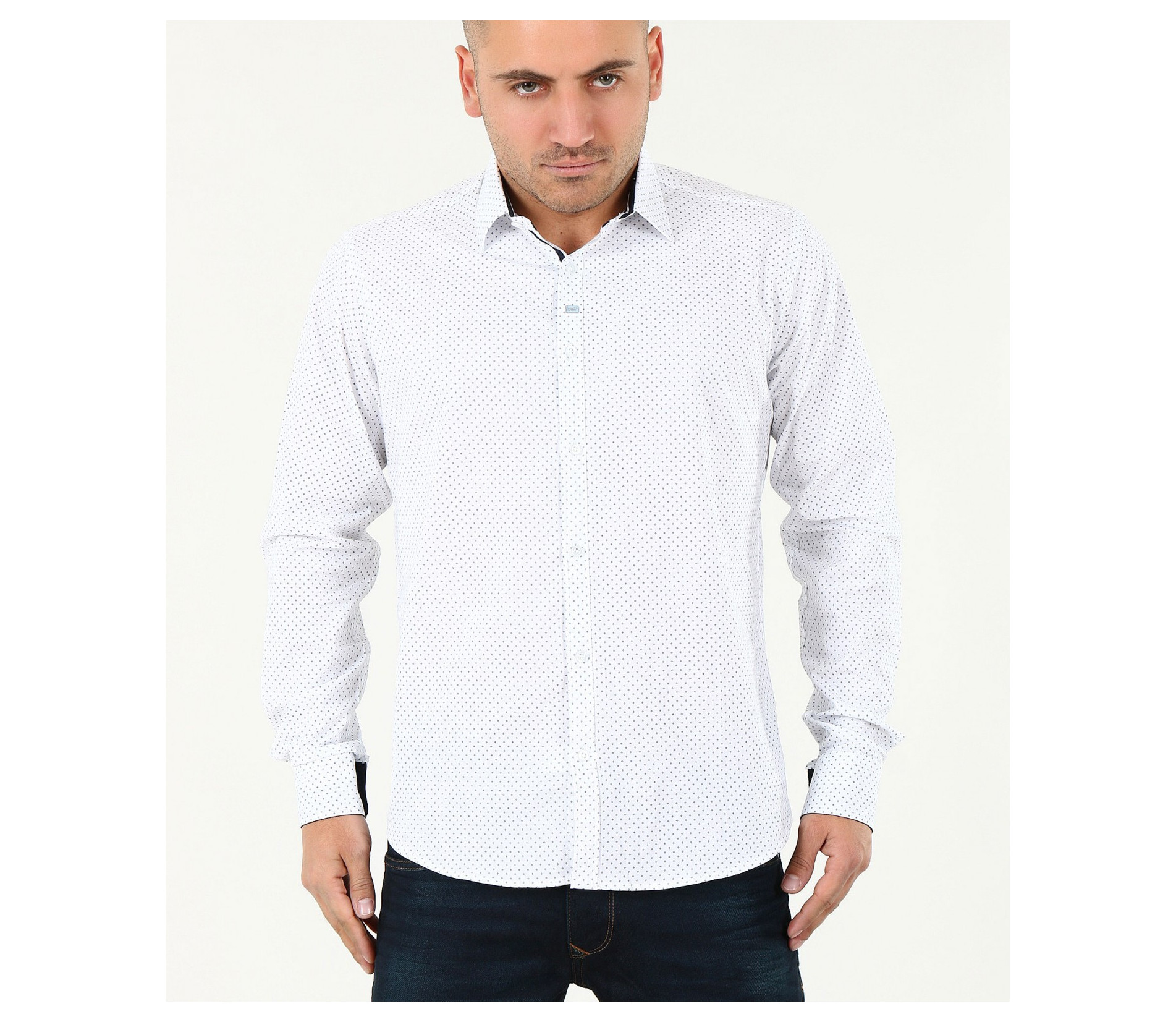 Описание на продукта: Супер стилна мъжка спортно-елегантна риза, която предлагаме в два свежи цвята: бял и син. Върху изситеният десен на ризата са поставени дребни орнаменти превръщащи ризата в една свежа стилна и любима дреха. Основният акцент на ризата се пада цветния кант, поставен под копчетата за закопчаване. Кройката на този модел риза е вталена със стандартна дължина, позволяваща Ви да я носите както външно така и вътрешно, като акцентирате върху стилен колан. Смело я комбинирайте с модерен деним, чифт елегантни обувки и стилно сако и получавайте всеки път, различна и модерна визия.