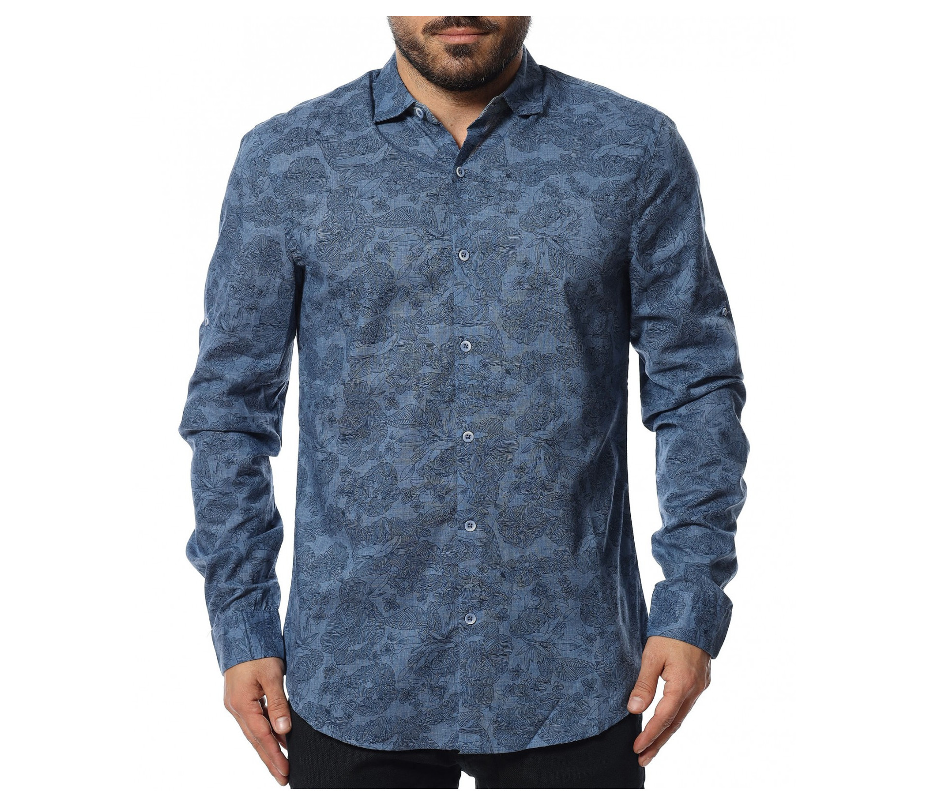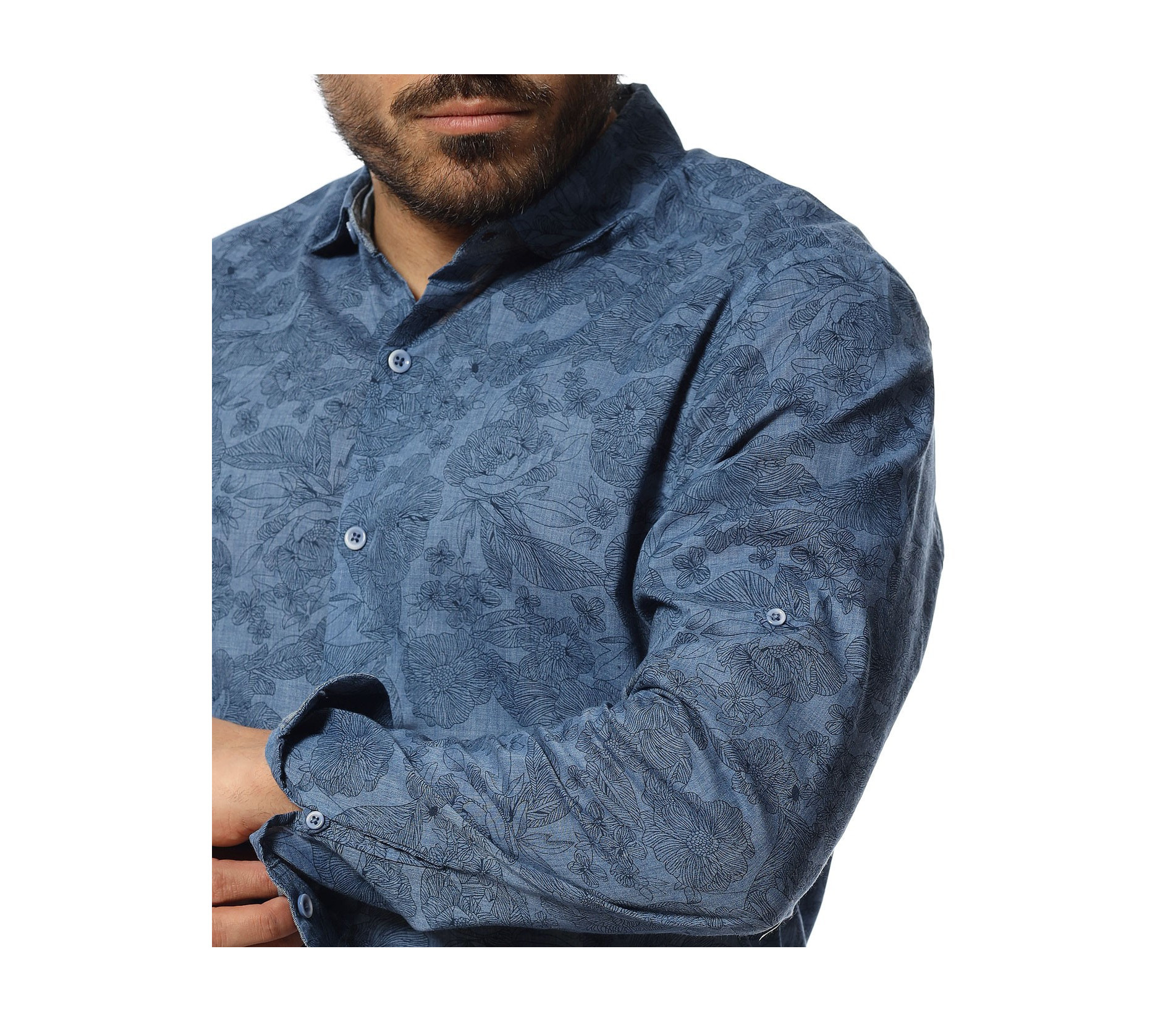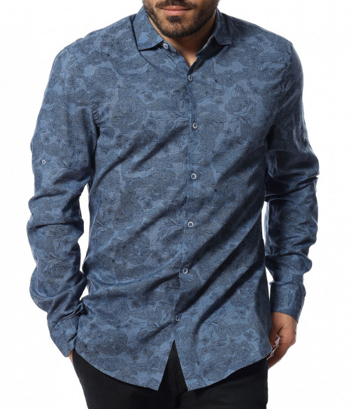Описание на продукта: Независимо дали в гардеробът Ви виси една риза, или имате цяла колекция от разнообразни модели, ние Ви представяме един модел, който гарантирано ще привлече вниманието. Често се налага да подберете по-елегантен имидж за повод или вечерно излизане, но не откривате подходяща дреха. Този модел мъжка риза е идеаелно решение за тези моменти. На пръв поглед откривате типична линия риза, деликатно падаща по тялото и с дължина, подходяща както за външно така и външно носене. Закопчаването е изработено в традиционен дизайн, а именно с копчета в централната част, заемащи цялата дължина. В тандем с тези мотиви е подбрана и яката. Иновативния елемент се явява принта, който е закачлива комбинация между еднотонна основа и закачливи орнаменти, комбиниращи vintage и флорални. Подходяща за комбинация както с панталон, така и с деним.