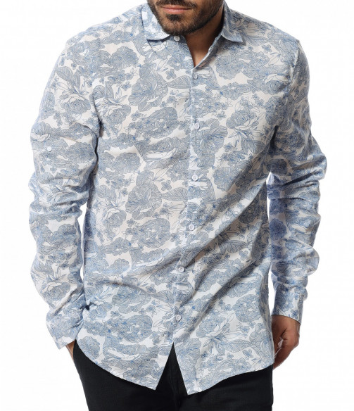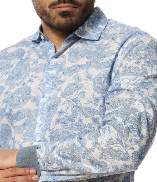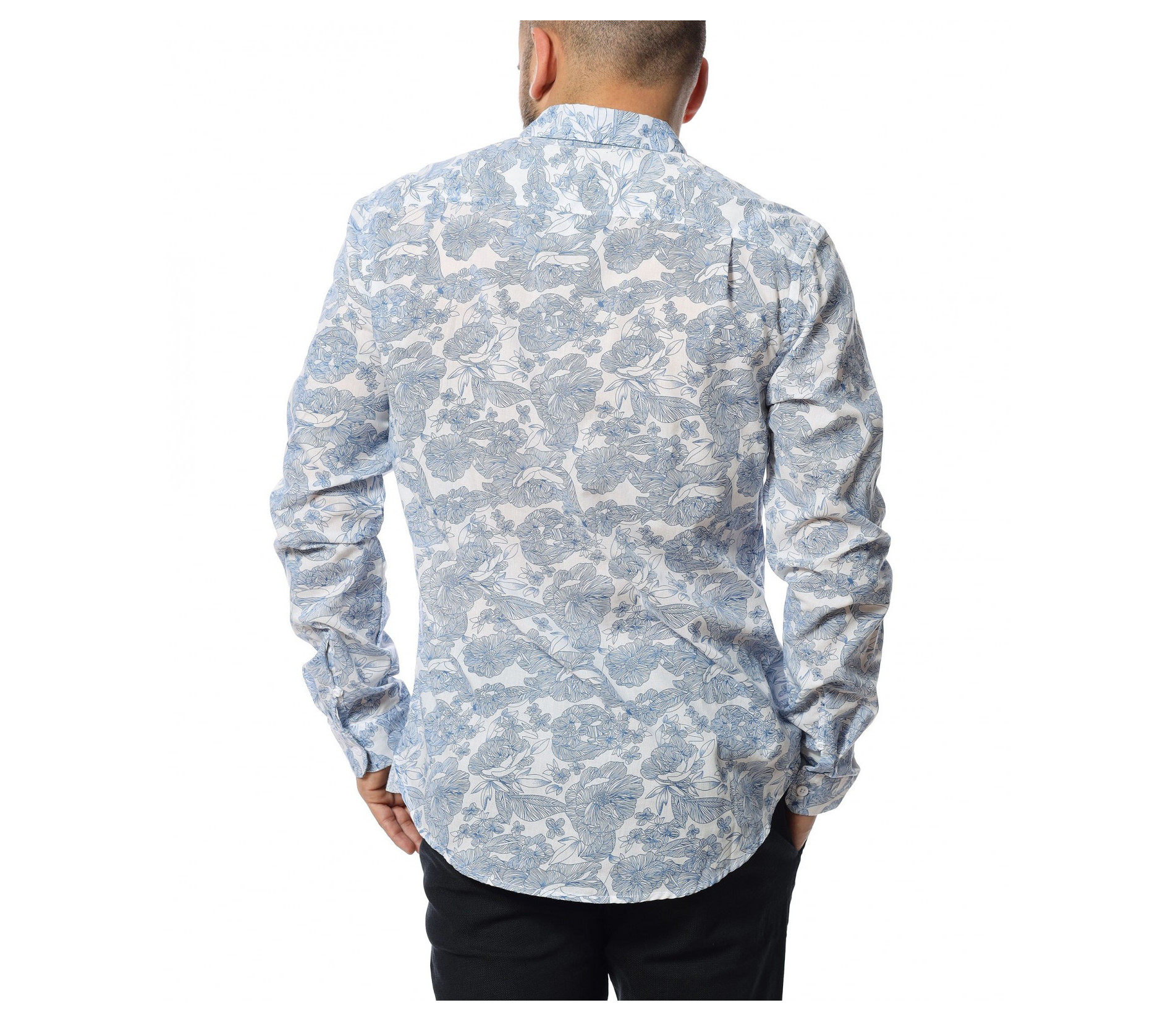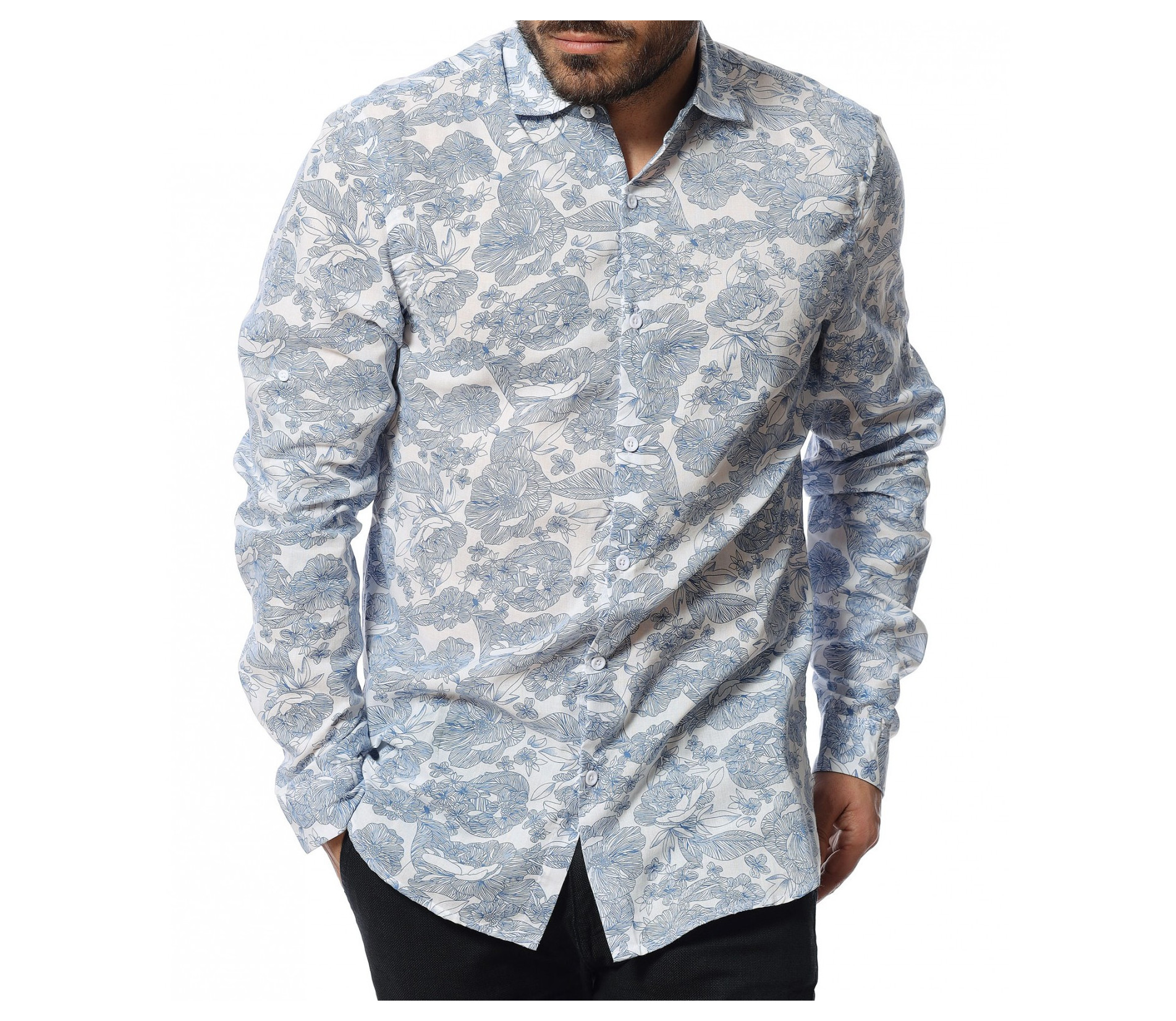 Описание на продукта: Независимо дали в гардеробът Ви виси една риза, или имате цяла колекция от разнообразни модели, ние Ви представяме един модел, който гарантирано ще привлече вниманието. Често се налага да подберете по-елегантен имидж за повод или вечерно излизане, но не откривате подходяща дреха. Този модел мъжка риза е идеаелно решение за тези моменти. На пръв поглед откривате типична линия риза, деликатно падаща по тялото и с дължина, подходяща както за външно така и външно носене. Закопчаването е изработено в традиционен дизайн, а именно с копчета в централната част, заемащи цялата дължина. В тандем с тези мотиви е подбрана и яката. Иновативния елемент се явява принта, който е закачлива комбинация между еднотонна основа и закачливи орнаменти, комбиниращи vintage и флорални. Подходяща за комбинация както с панталон, така и с деним.