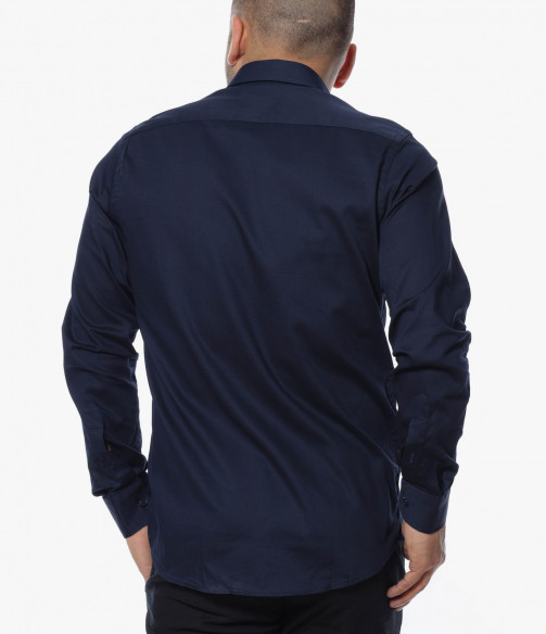 Ризите са чудесно попълнение към всеки мъжки гардероб и затова сме ви подготвили изискан модел - изчистена и едноцветна риза. Кройката се адаптира към тялото, давайки усещане за свобода на движение, благодарение на меката си памучна материя. Моделът е напълно изчистен от декорации и елементи. Дължината е стандартна, покриваща колана. Изградете вашият класически и стилен имидж като комбинирате с дънки, официален панталон и подходящи обувки.