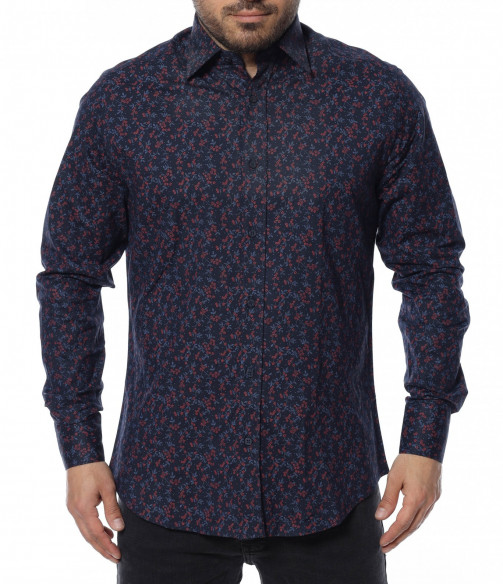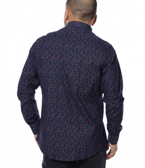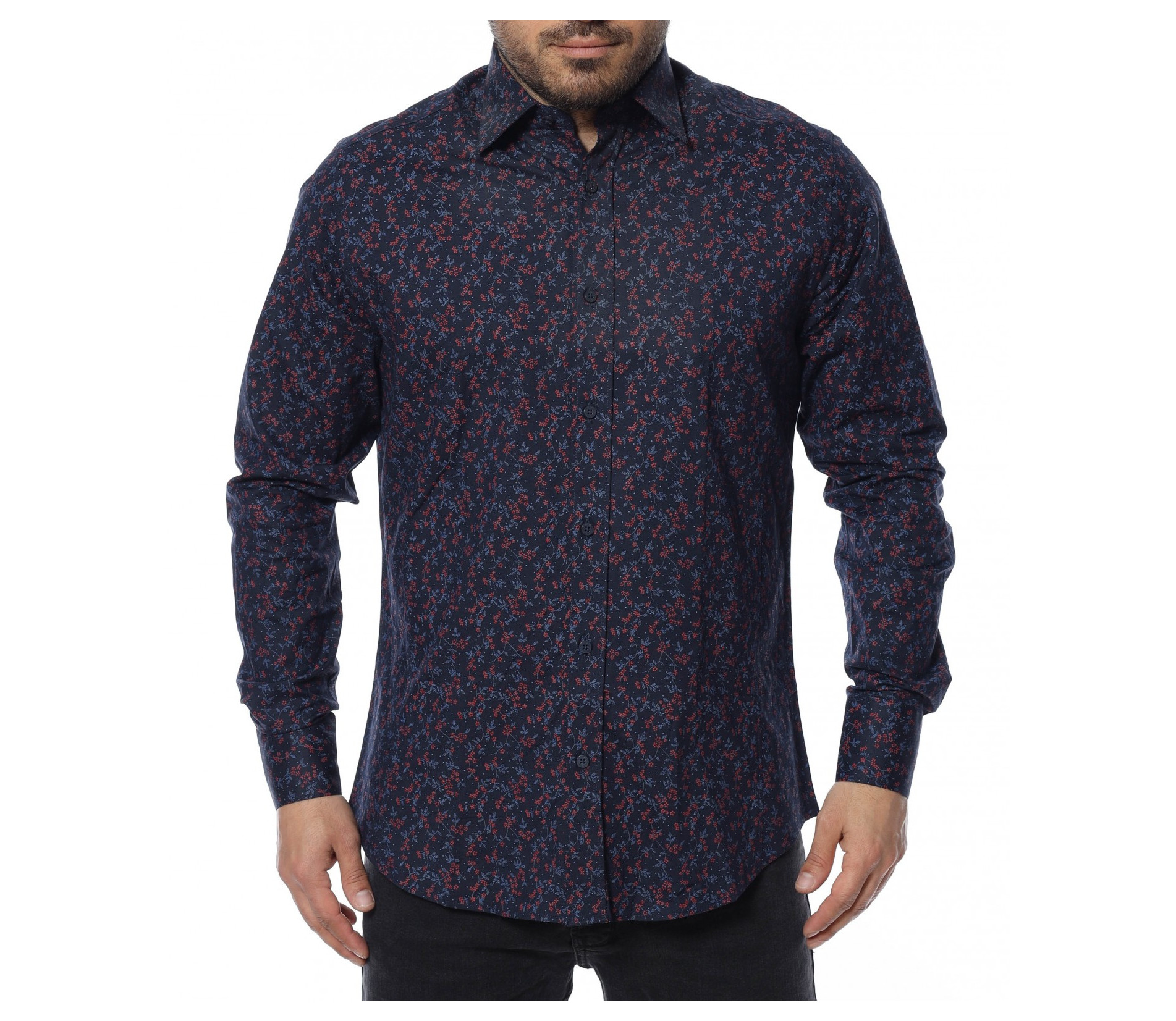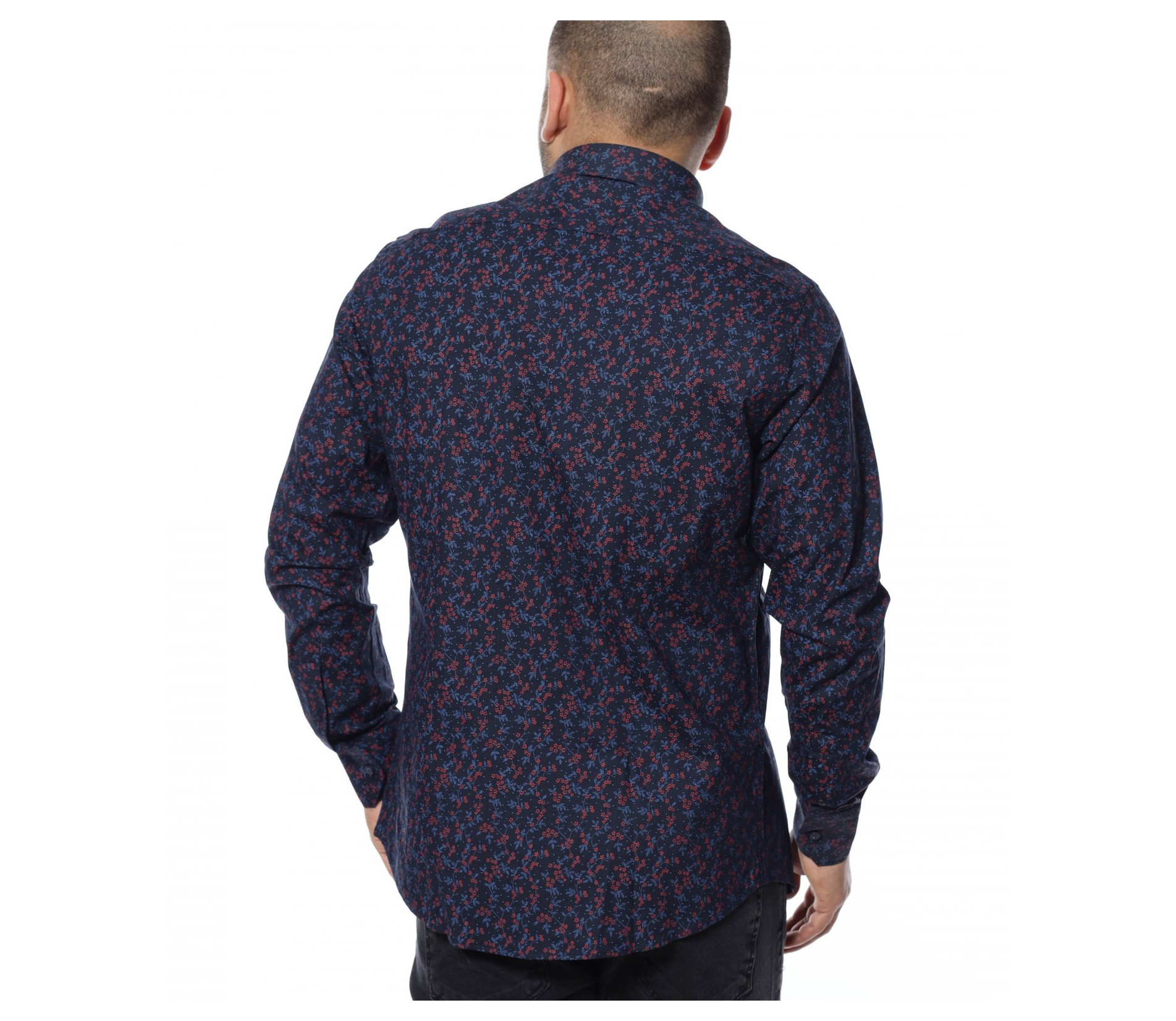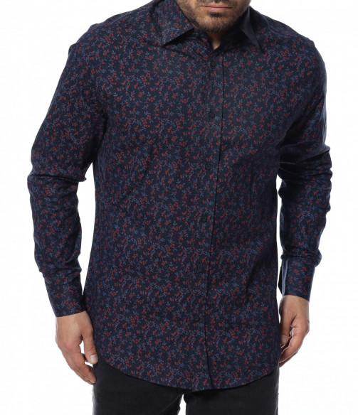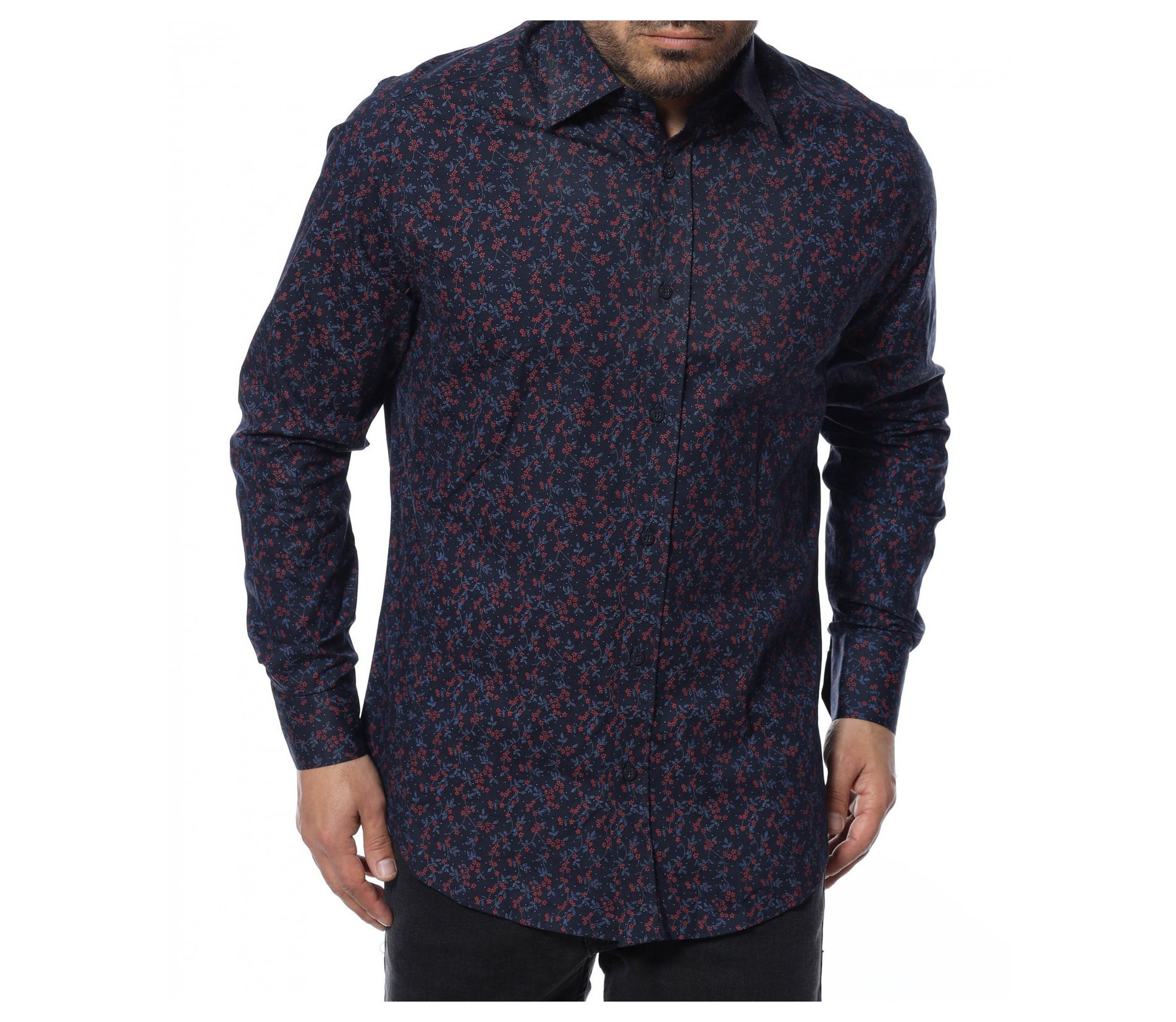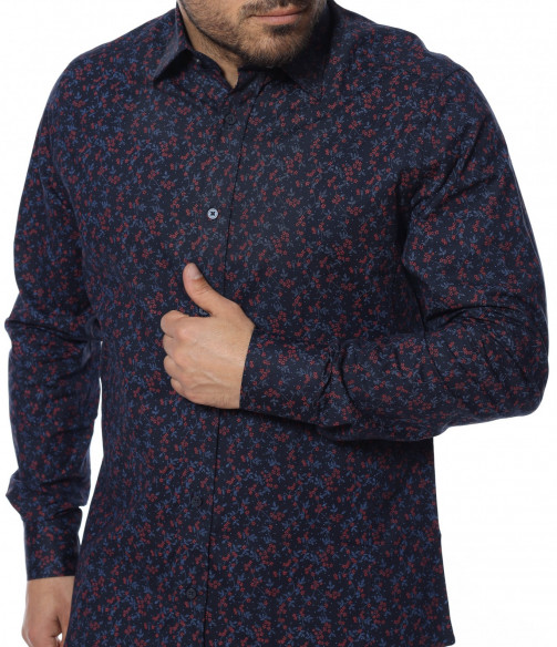 Представяме ви елегантна и стилна мъжка риза. Основате е едноцветна, а десенът й е на различни и ситни флорални мотиви и цветя, което прави моделът открояващ се от класическите. Кройката следва линиите на тялото, а комбинацията от мека памучна материя и еластант придават на тялото така желаният комфорт и свобода на движение. Закопчаването се състои в копчета, а на ръкавите, при китката е разположено копче, за да прибира елегантно ръкава. Комбинирайте с елегантен панталон, дънки и подходящи обувки