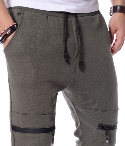 Представяме ви иновативно спортно долнище. За декорация от двете страни, над коленете, хоризонтално са позиционирани ципове. Кройката е удобна и идеално, прилягаща по тялото. На талията са поставени връзки за регулиране на ширината. Моделът разполага и с два стандартни джоба. Изработен от 100% мека и удобна памучна материя. Комбинирайте със спортни гуменки, кецове и тениска в любимите ви дизайни.