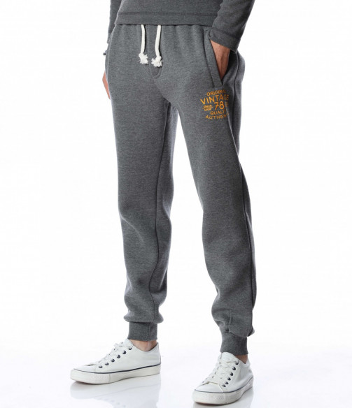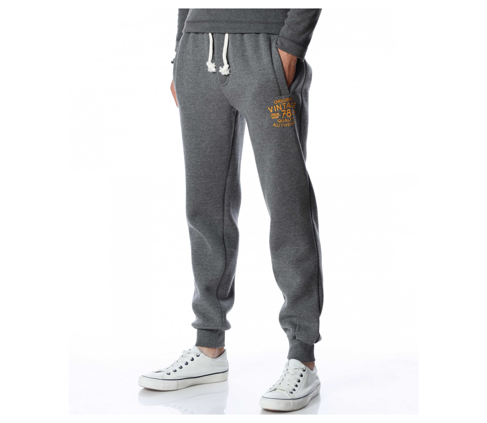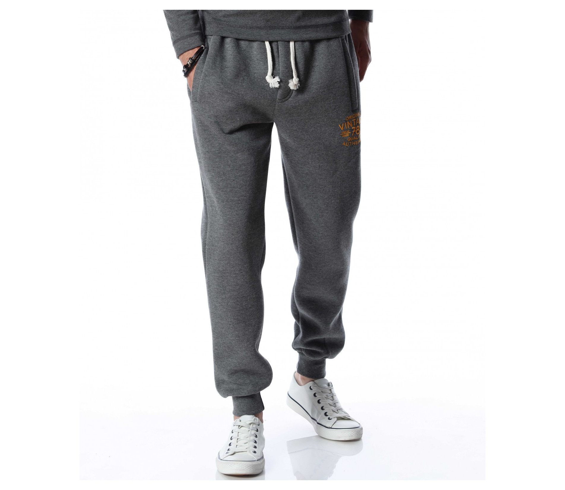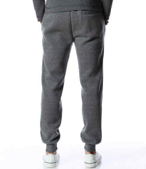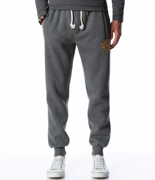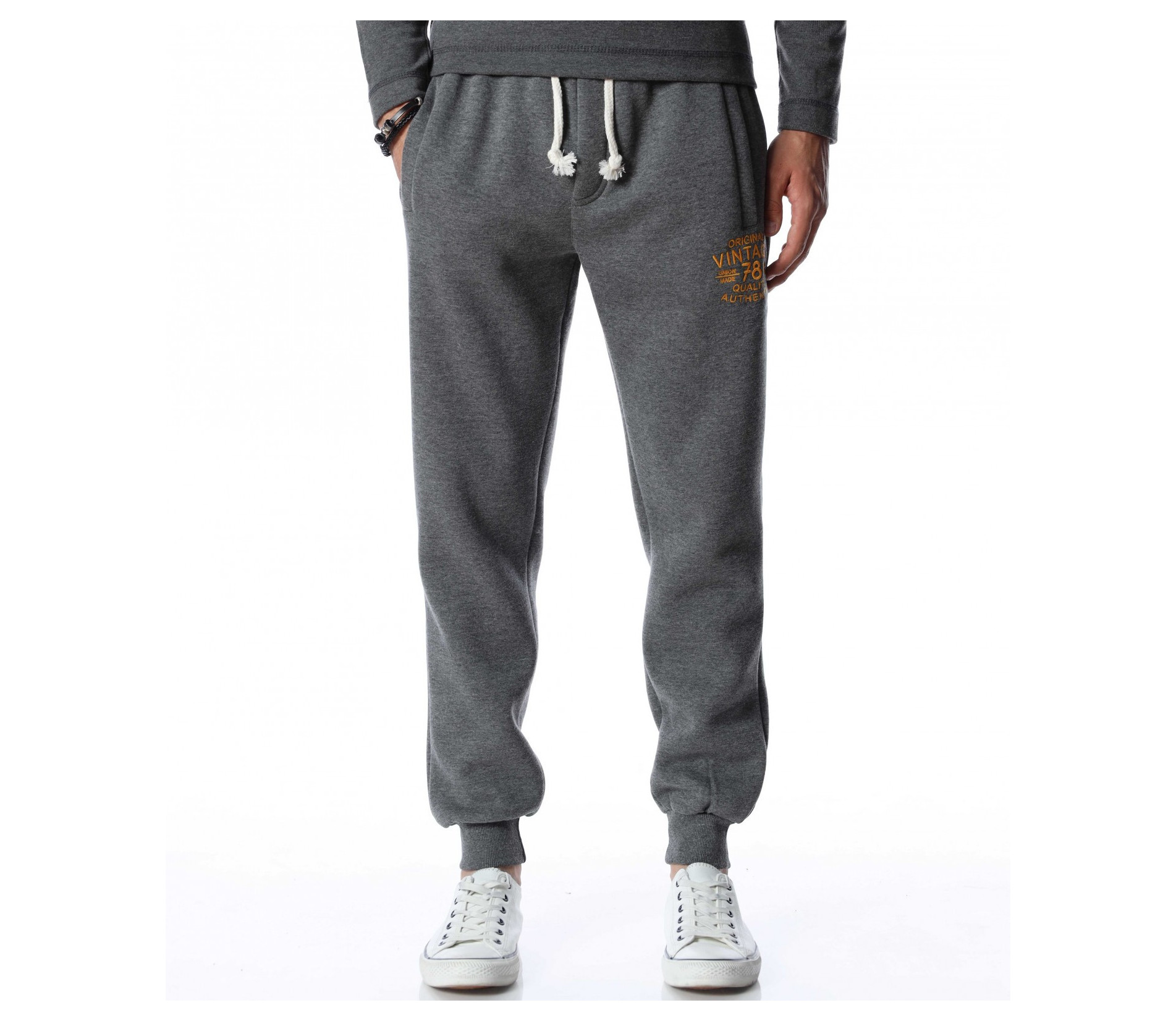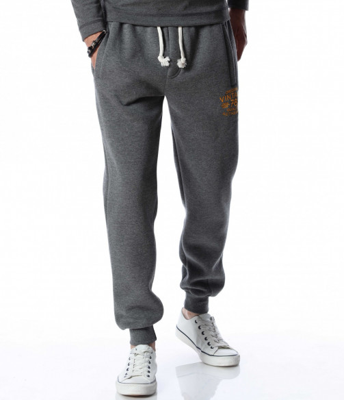 Спортно, мъжко долнище в едноцветен вариант. В горната част е позиционирана бронирана декорация. Анцугът разполага с отворени джобове в предната част и един отзад. На талията са разположени връзки за регулиране на ширината. При глезените са поставени ластични маншети за прибиране на крачола. Комбинирайте с високи кецове и блуза.