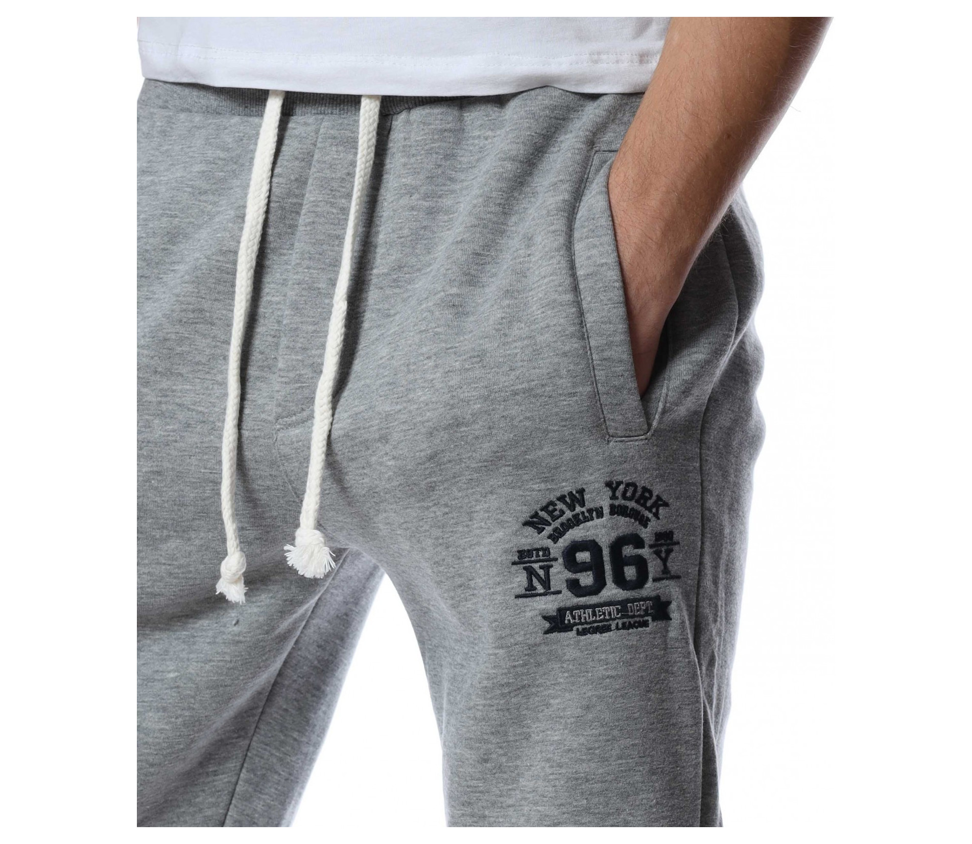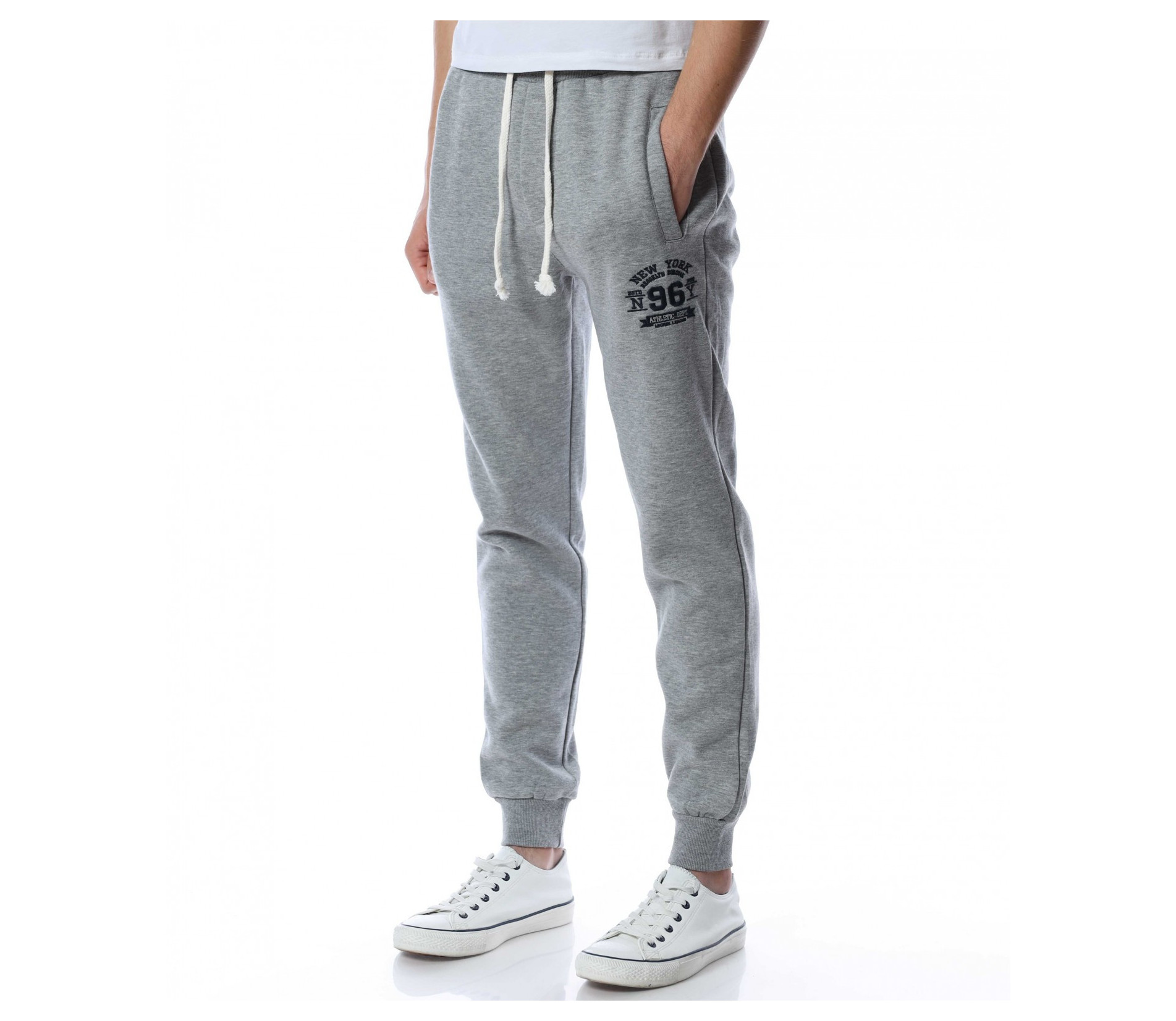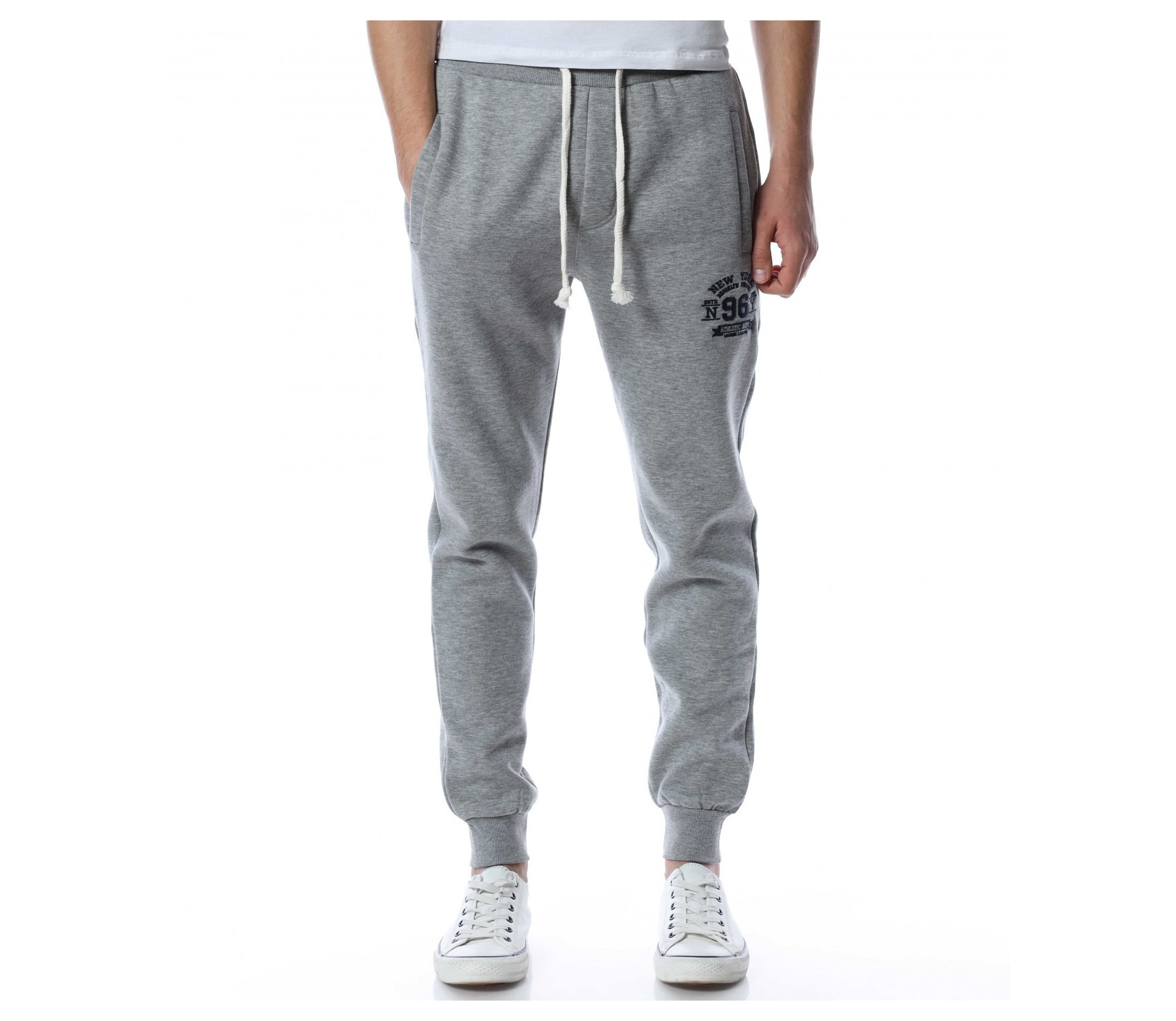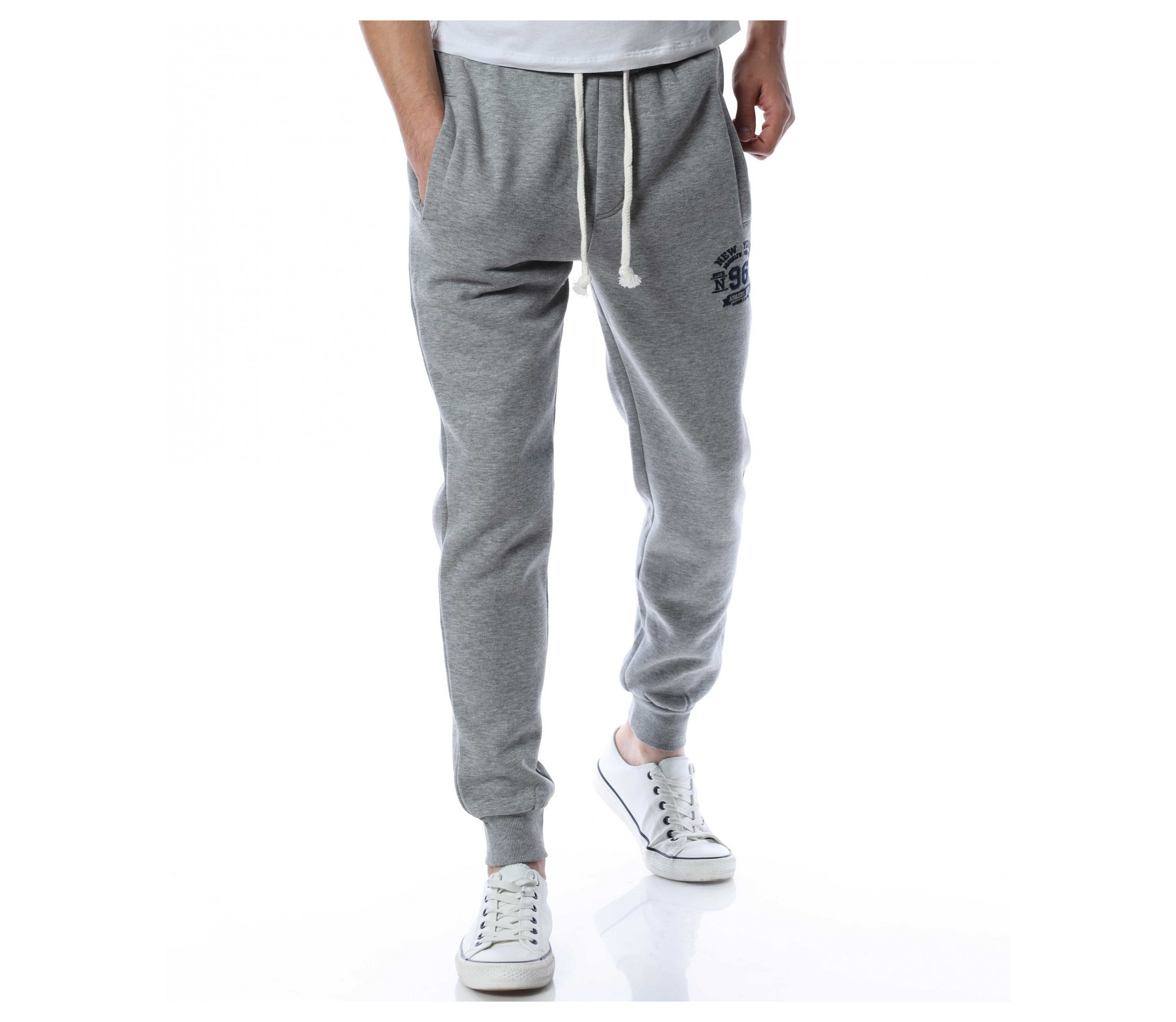 Мъжко спортно долнище от мека материя, която придава на тялото комфорт и лекота на движение. При глезените са разположени ластични маншети, които прибират крачола за завършен вид на дрехата. На талията са поставени връзки за регулиране на ширината. Моделът е без закопчаване, а кройката е изключително удобна. Комбинирай с кецове и блуза.