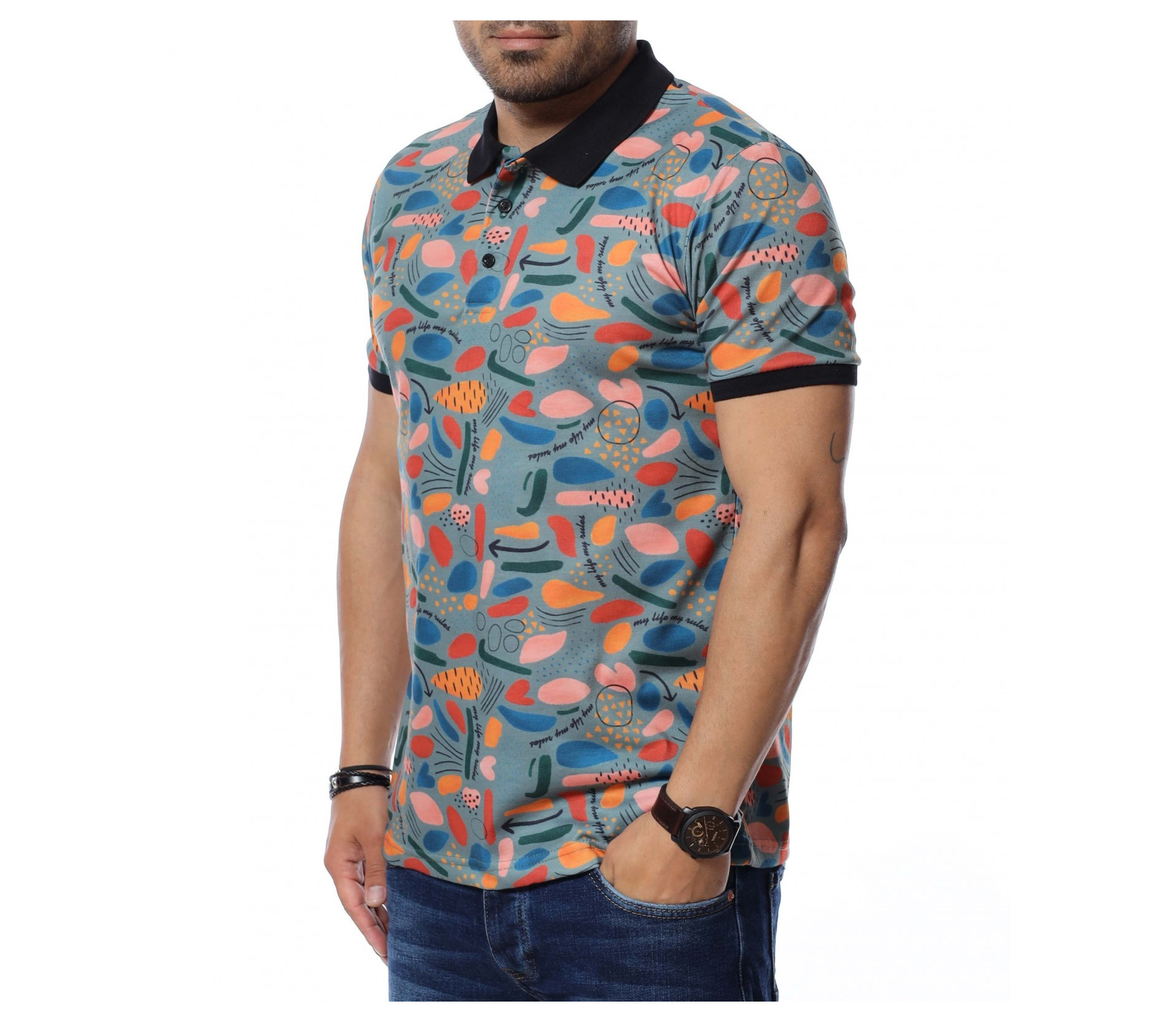 Мъжка блуза с къс ръкав и яка.
