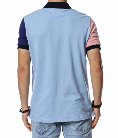 ОПИСАНИЕ НА ПРОДУКТА: Спортно-елегантен модел мъжка блуза с къс ръкав, декорирана с атрактивна яка в различен десен. Супер стилният модел тениска е подходящ за всеки от Вас, който иска да заложи на елегантната визия, без да прави компромис с комфорта. Този тишърт съчетава в себе си леко свободна кройка и стандартна дължина, което я превръща в един от най-желаните модели за сезон пролет/лято 2022г. Предлагаме тениската в два свежи летни цвята: син и розов, като и двата са декорирани с тъмносини яки, чийто цвят е пренесен на ластиците върху ръкавите, а самите ръкави са в два различни цвята. В областта на гърдите е поставена и малка щампа, перфектно завършваща модерното излъчване на блузата. Бъдете елегантни и в ежедневието, като заложите на този уникален тишърт с яка и го комбинирате със стилни дънки, спортно-елегантни обувки и спортен елек.