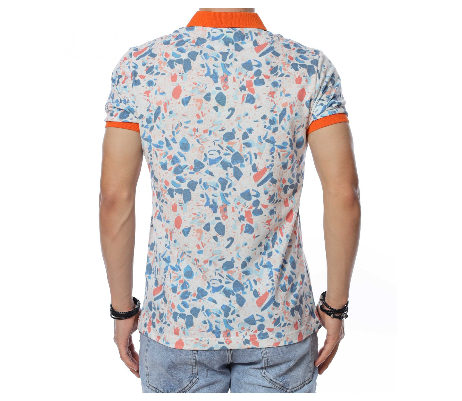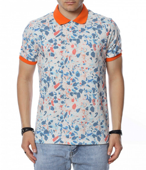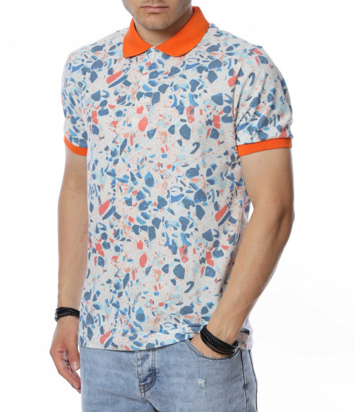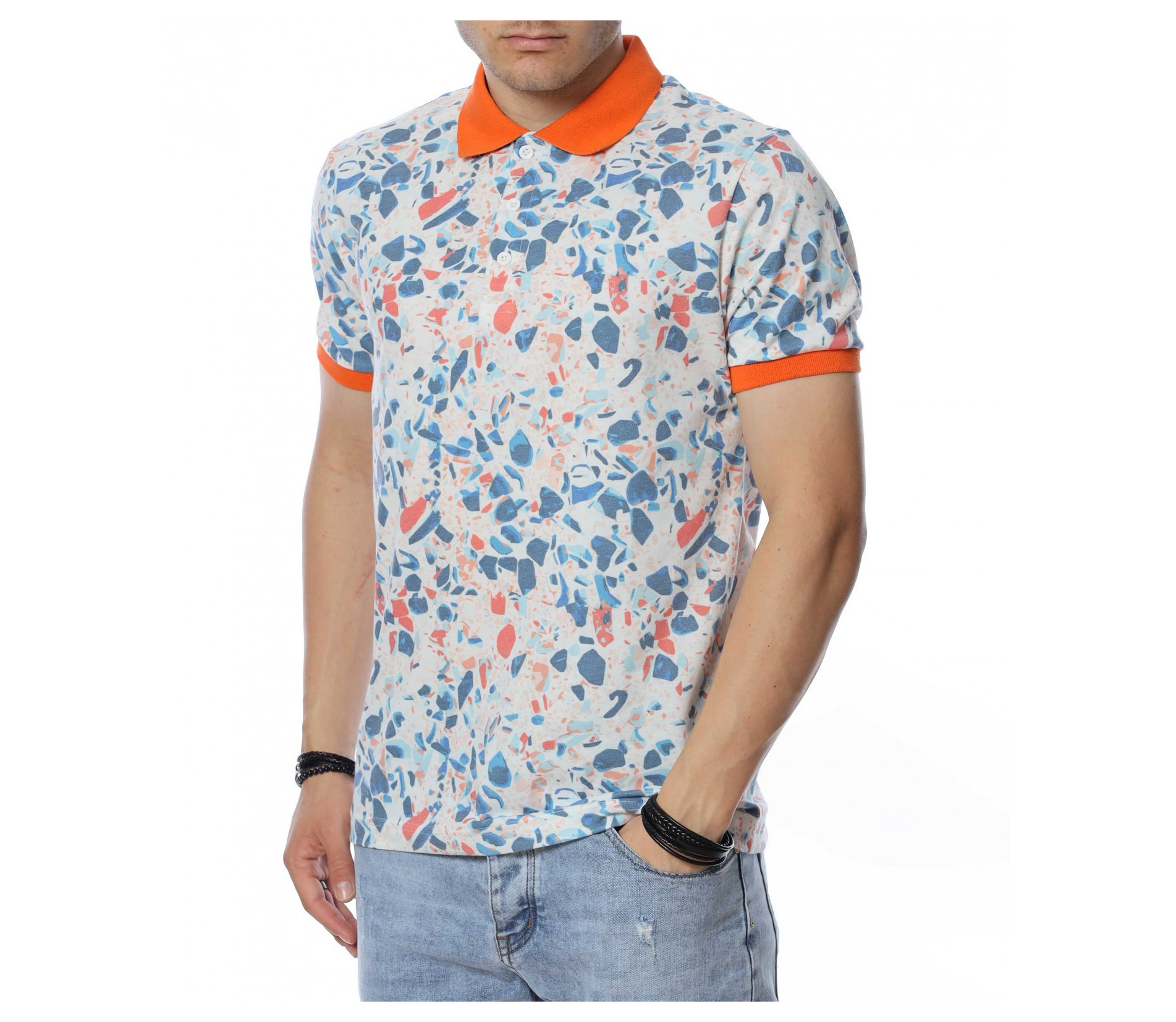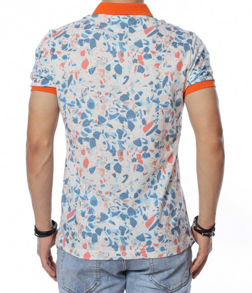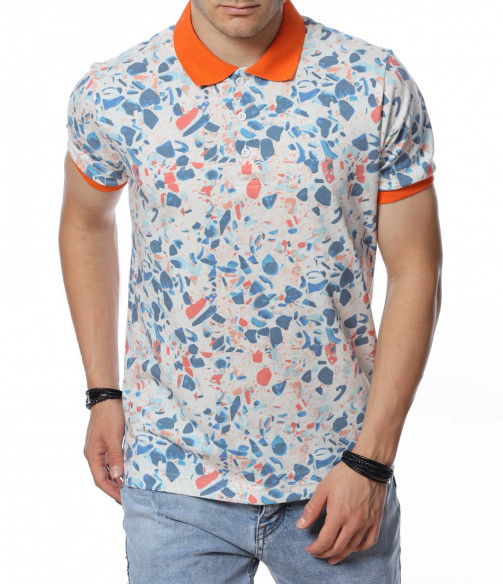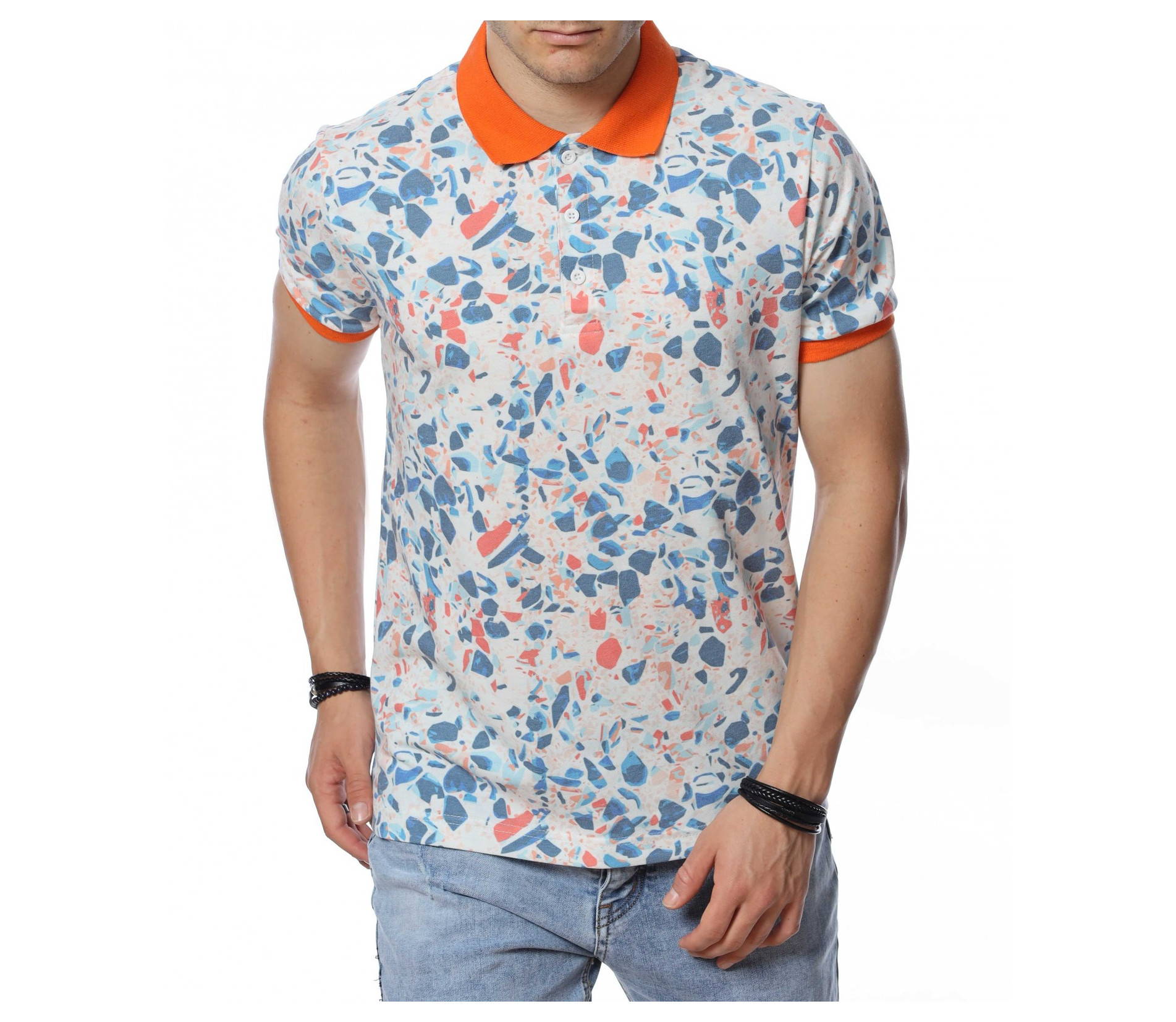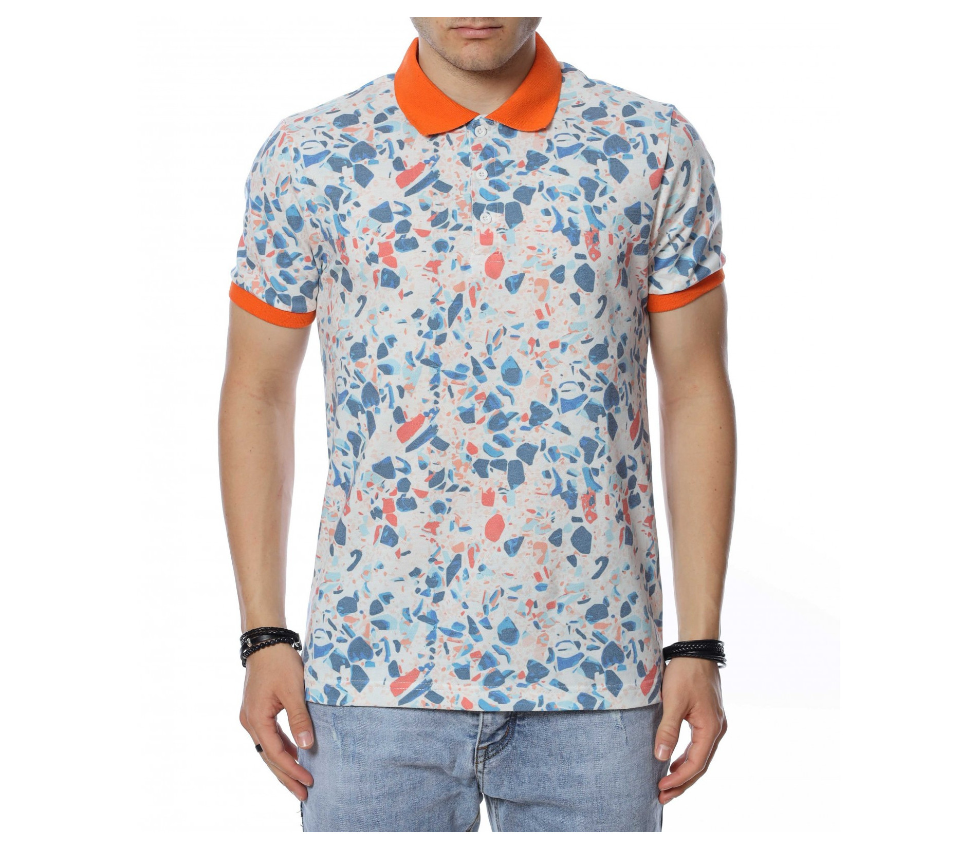 ОПИСАНИЕ НА ПРОДУКТА: Свеж модел мъжка тениска, декорирана с яка и три малки копчета в областта на деколтето. Основният десен в, който е изпъстрен тишърта, съчетава в себе си принт от цветни петна върху бяла основа. Най-контрастиращия цвят от десена е оранжевия, като ефекта му е пренесен и в областта на яката и ластиците на ръкавите. Идеално съчетаните акцентиращи елементи, леко вталената кройка и модерно излъчване, Ви осигуряват перфектен вид и гарантиран комфорт. Комбинирайте тениската с модерни дънки или спортен панталон, изчистено спортно сако и любимите обувки, и създайте собствен стил, перфектен до последния детайл.