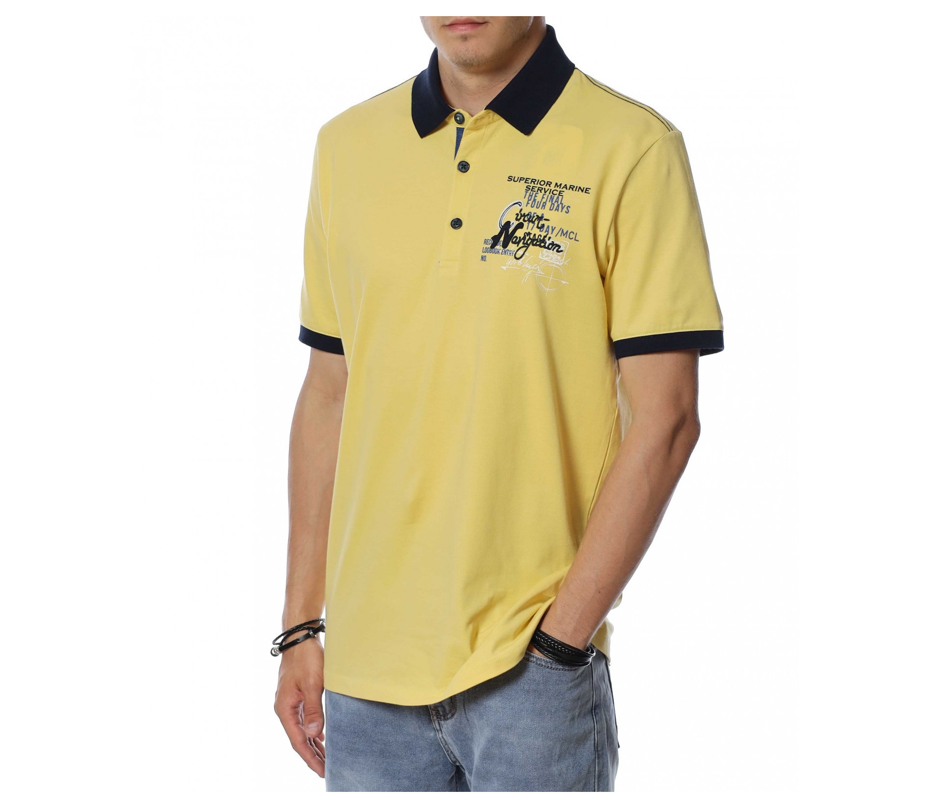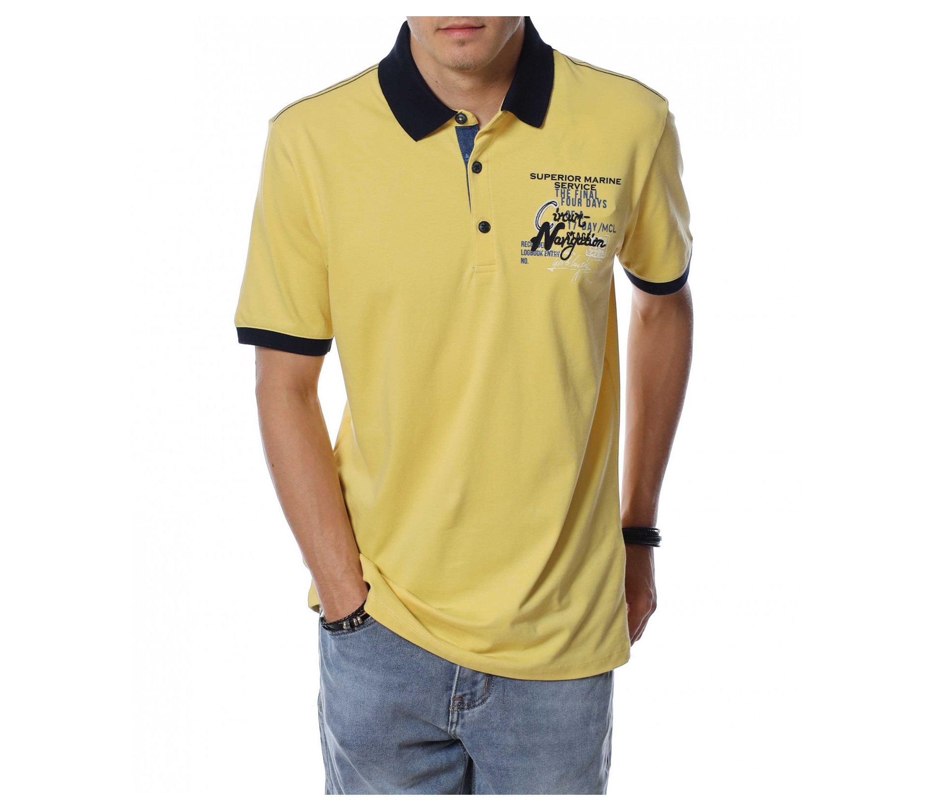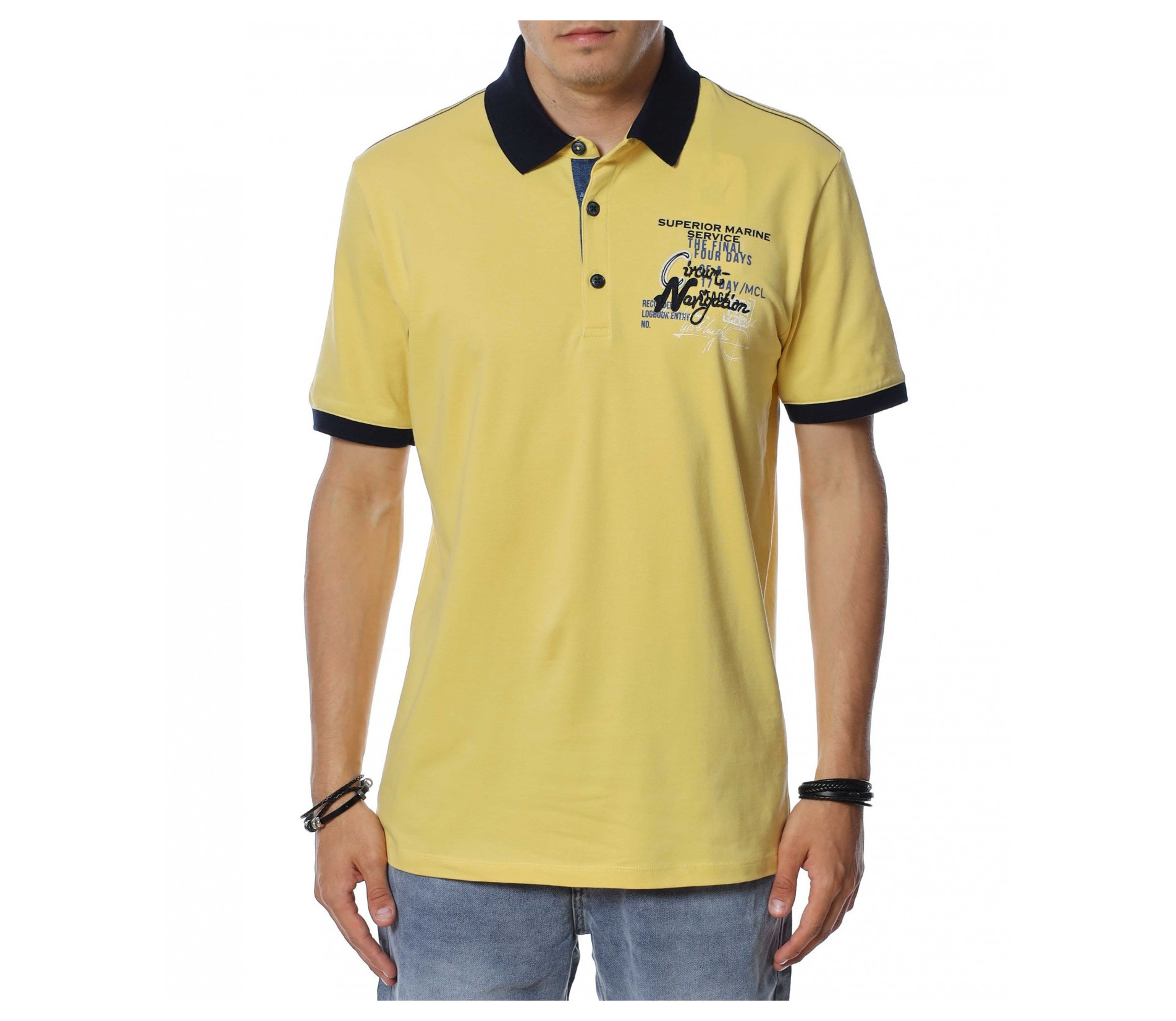 Тениска с яка с нашивки 13929 - Жълт
