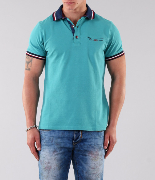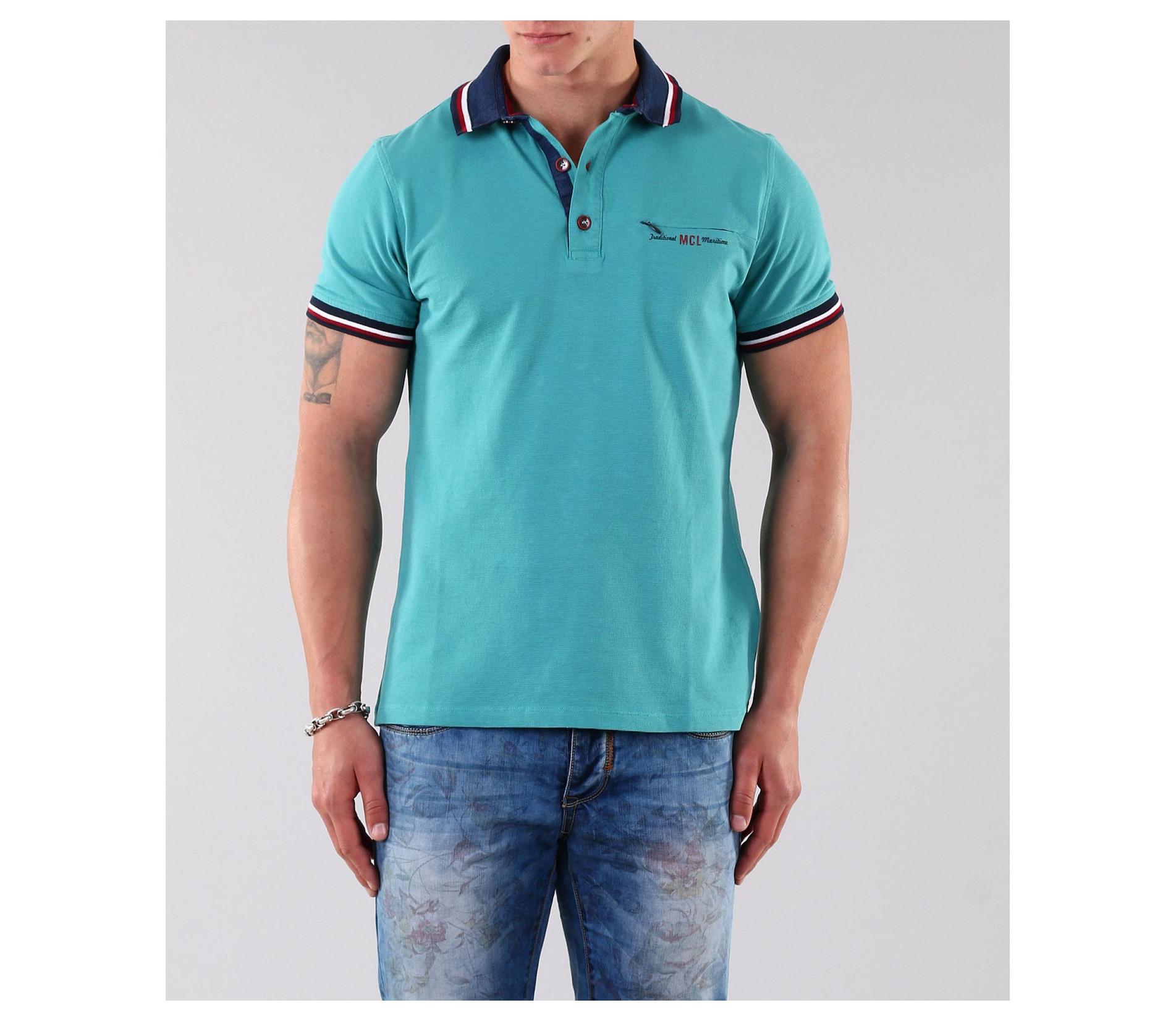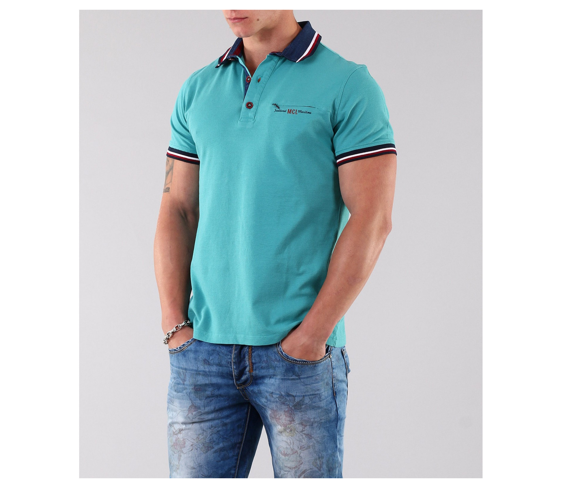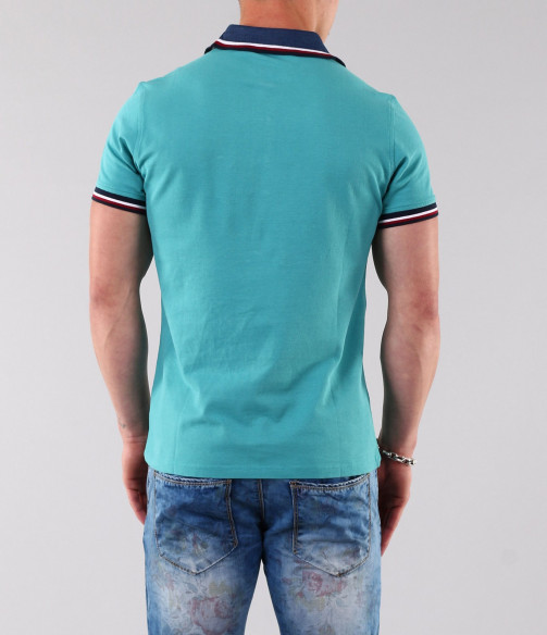 Описание на продукта: Мъжка свежа тениска с къс ръкав и яка. В областта на деколтето има тъмносиня яка и две малки декоративни копчета. Ръкавите на този модел са с ластици, също в тъмносин цвят. В областта на гърдите има ненатрапчив надпис, като акцент на тениската. Гърба на моделът е изчистен. Кройката е леко вталена, а дължината стандартна. В съчетание със спортно-елеганти дънки или панталони, кецове, обувки и аксесоар по Ваш вкус, получавате впечатляваща визия. С прецизната си изработка от 100% чист памук, ние Ви гарантираме високото качество и комфорт на модела.