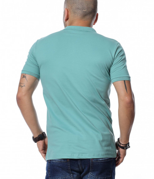 Разноцветна тениска с яка 12254 - Зелен