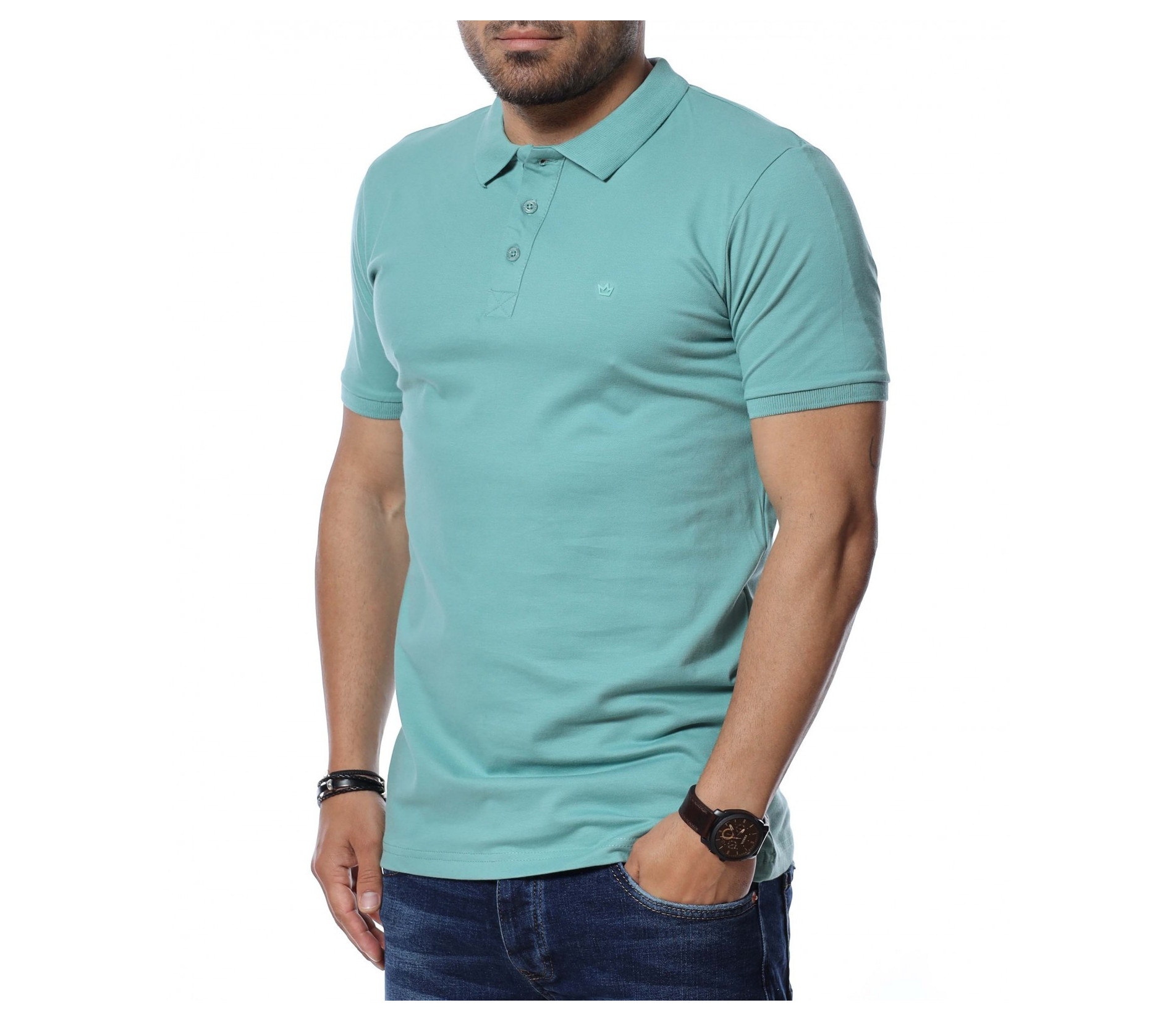 Подбрали сме ви актуална мъжка блузка с къс ръкав и яка в еднотонни цветове. Тениската е напълно изчистена, семпла и еднотонна. Напълно подходяща за ежедневието и може да я комбинирате с спортно-елегнания стил. В предната лява част откриваме миниатюрна емблема, а на деколтето са разположени три копчета, чрез които да прибирате стилно яката. Кройката приляга идеално на тялото, а комбинацията от висококачествена памучна материя и еластант я прави удобна и устойчива.