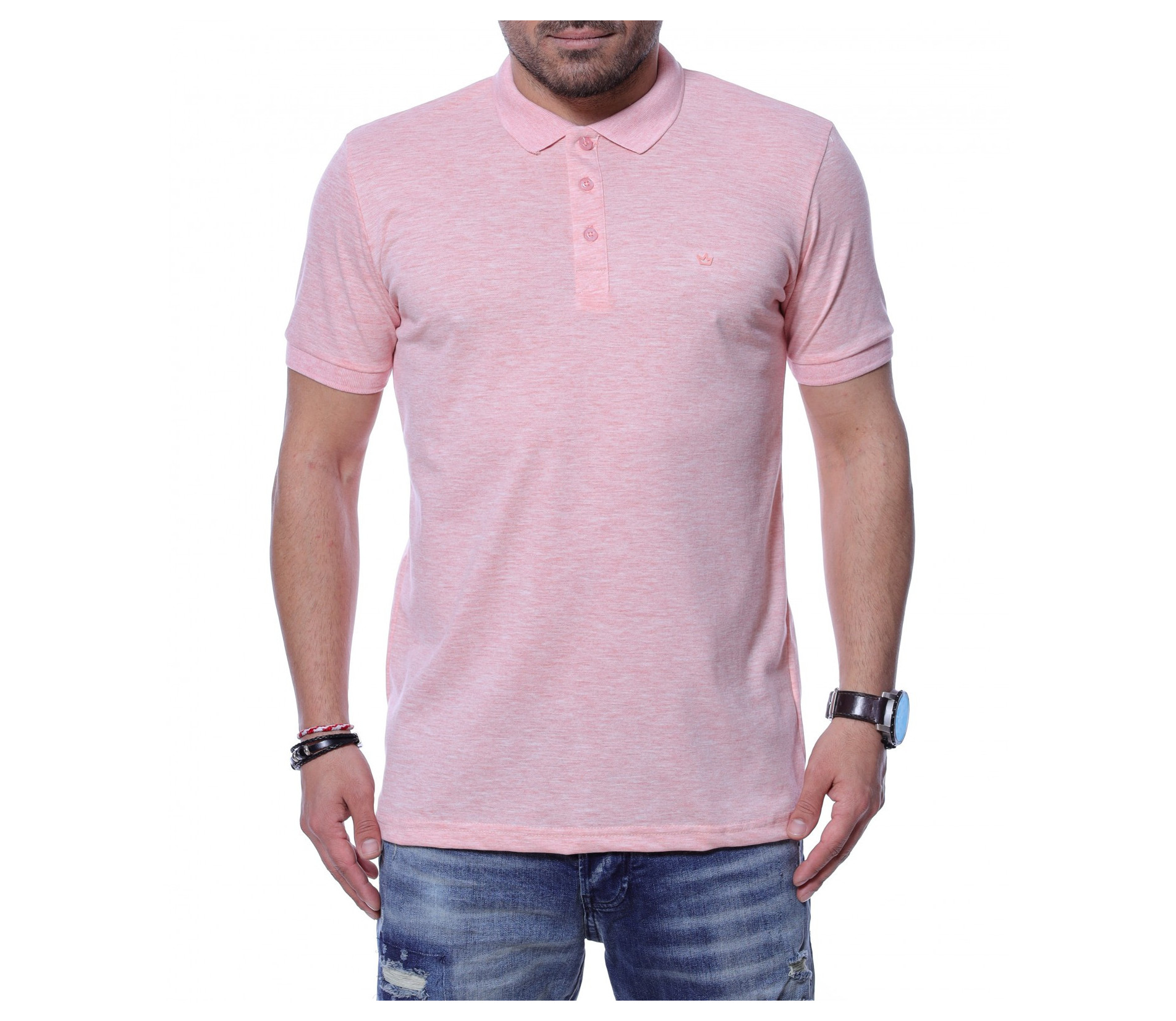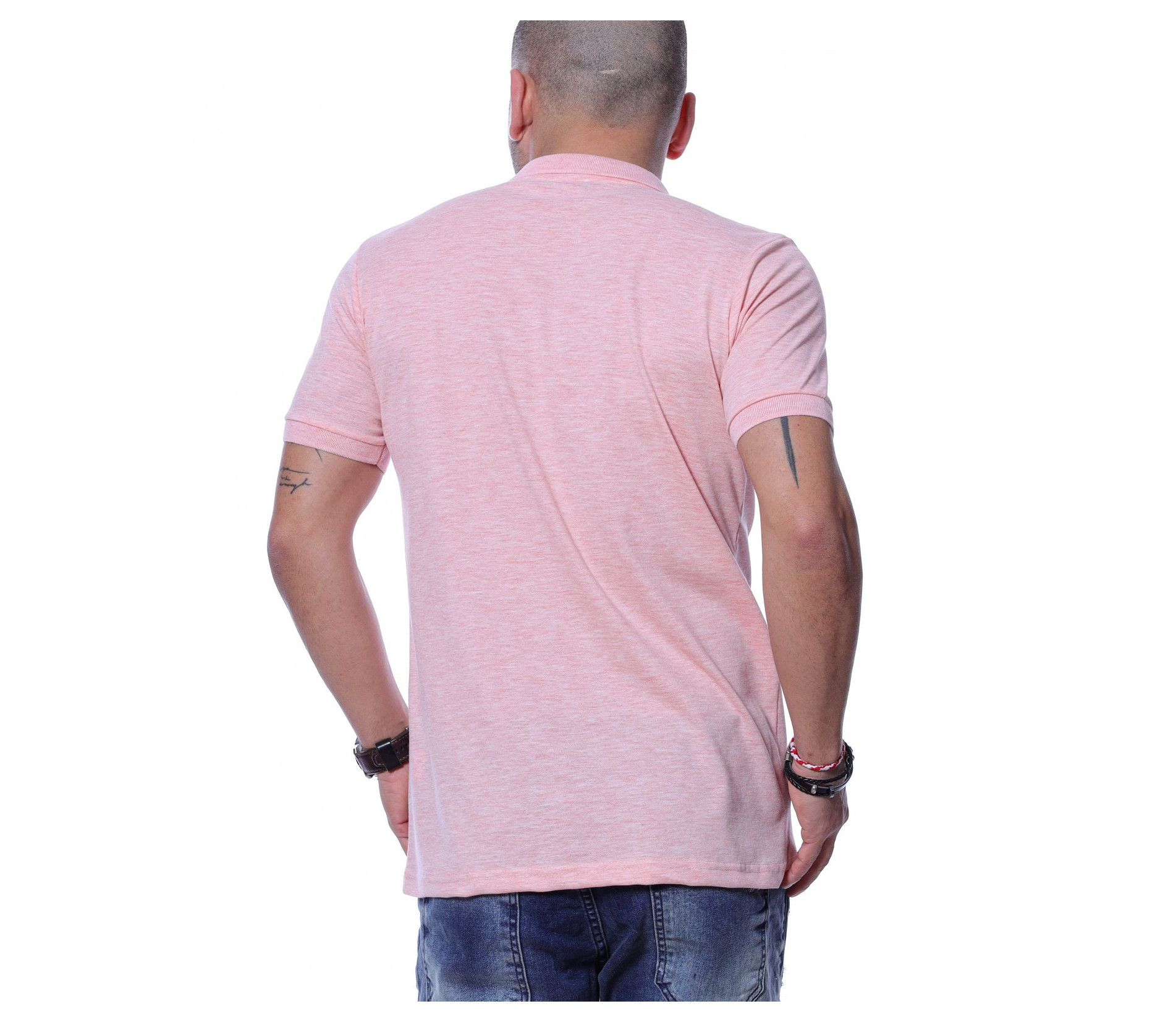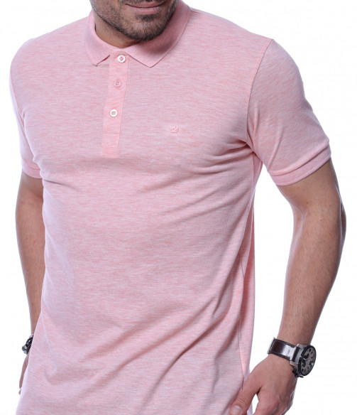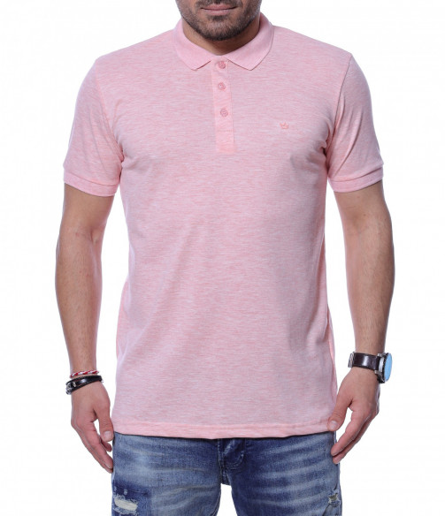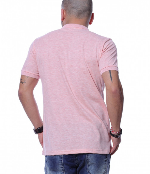 Разноцветна тениска с яка 12254 - Розов