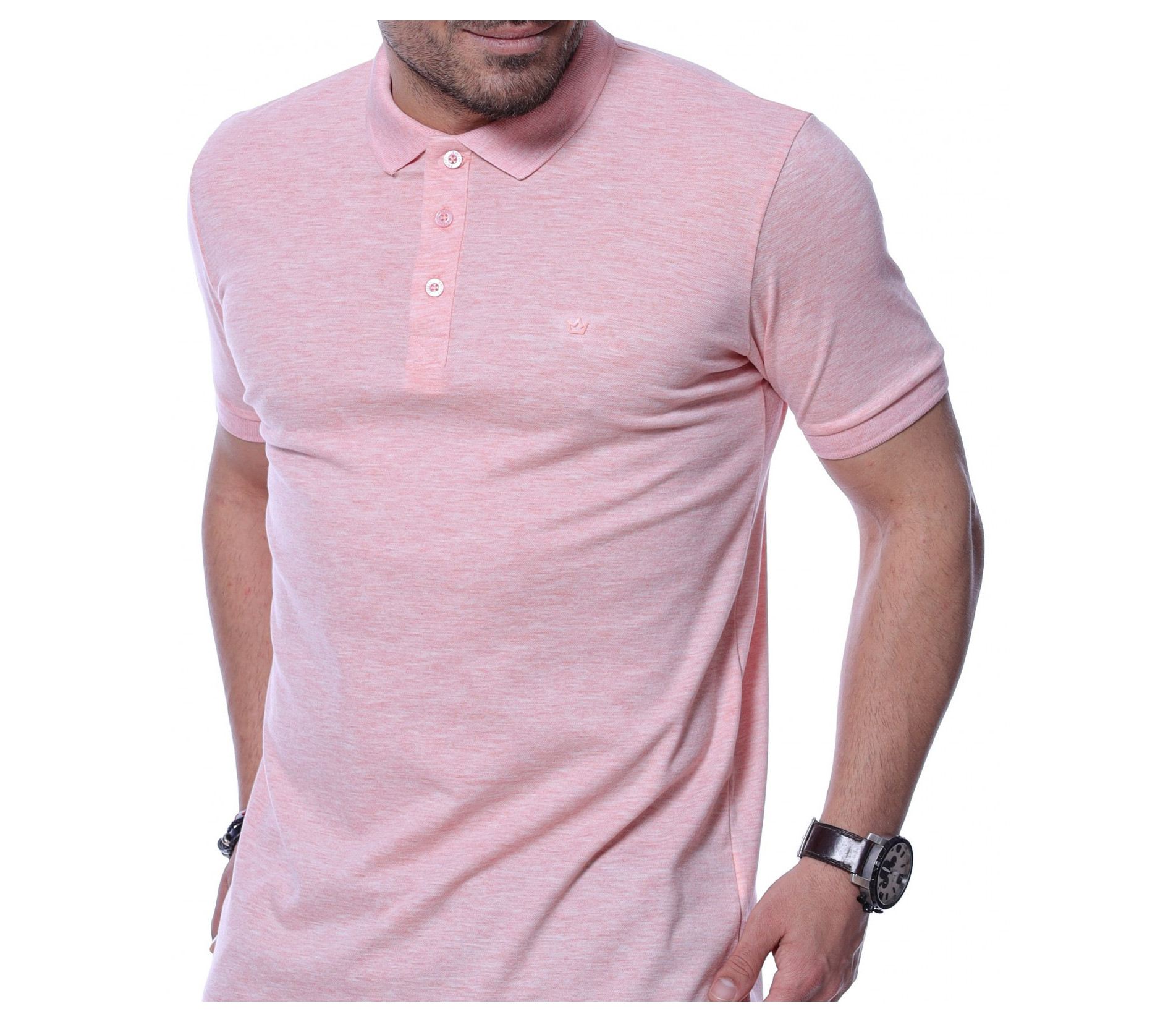 Подбрали сме ви актуална мъжка блузка с къс ръкав и яка в еднотонни цветове. Тениската е напълно изчистена, семпла и еднотонна. Напълно подходяща за ежедневието и може да я комбинирате с спортно-елегнания стил. В предната лява част откриваме миниатюрна емблема, а на деколтето са разположени три копчета, чрез които да прибирате стилно яката. Кройката приляга идеално на тялото, а комбинацията от висококачествена памучна материя и еластант я прави удобна и устойчива.