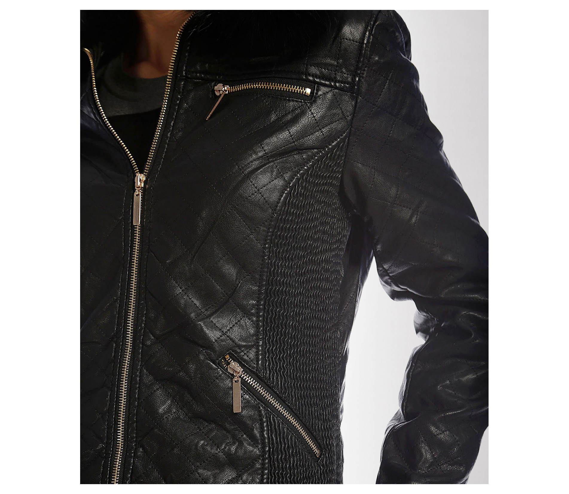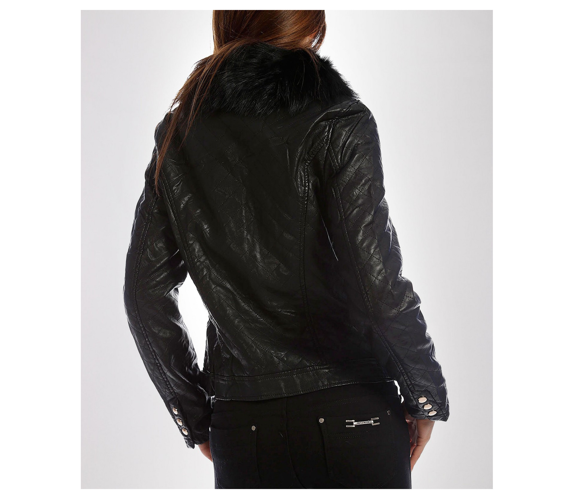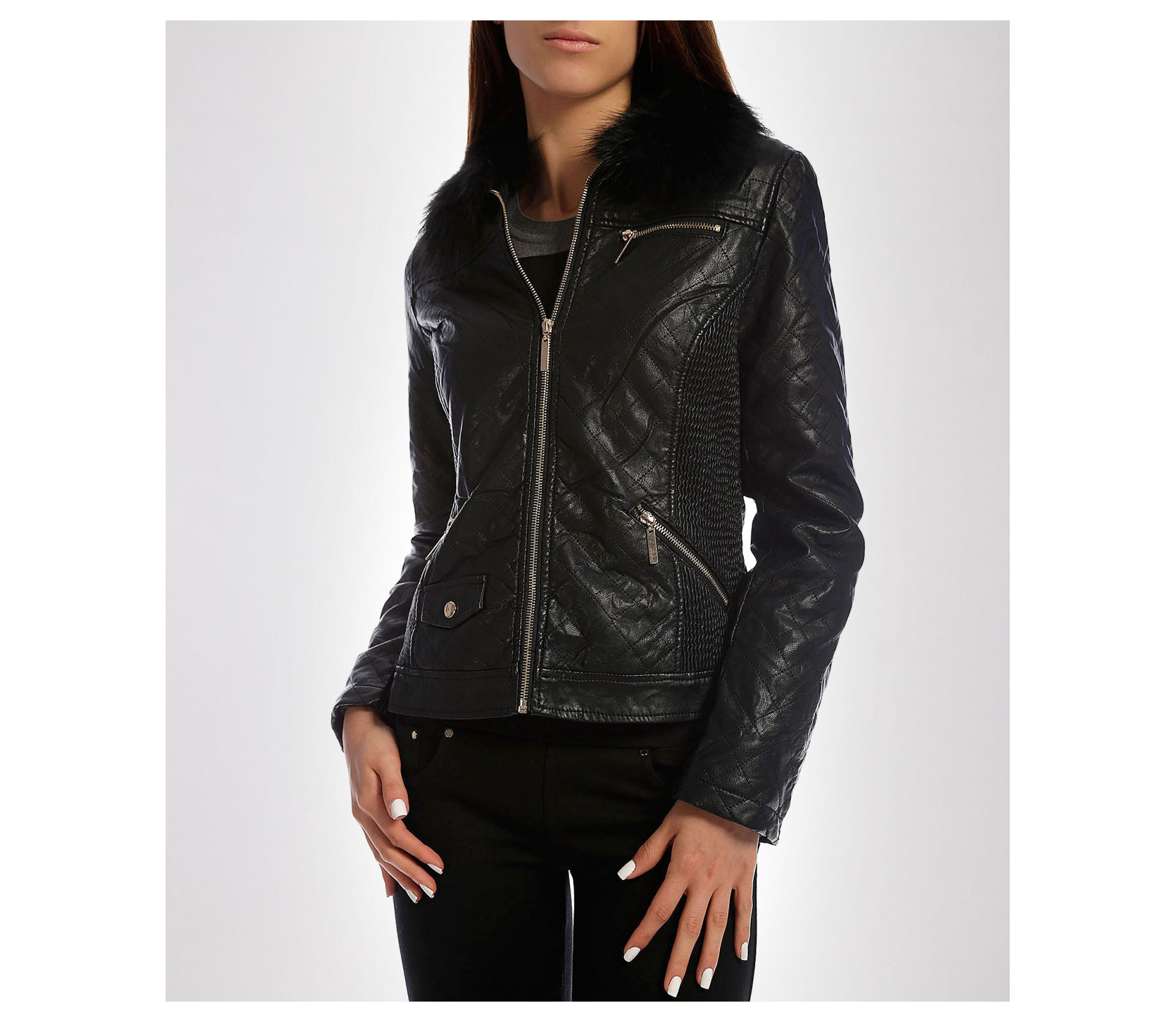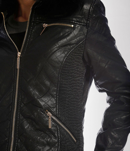 Описание на продукта: Дамско кожено яке в тъмносин цвят с подплата от вътрешната страна. Този модел е с подвижна пухена яка, която е закачена с копчета за основната яка. Уникалната вталена кройка на якето, Ви осигурява перфектна линия на цялостната Ви модерна визия. Якето има златни ципове и копчета, поставени като силни акцентиращи елементи. Заложете на спортно-елегантния стайлинг, като съчетаете якето със стилен деним, атрактивни обувки и любим аксесоар.